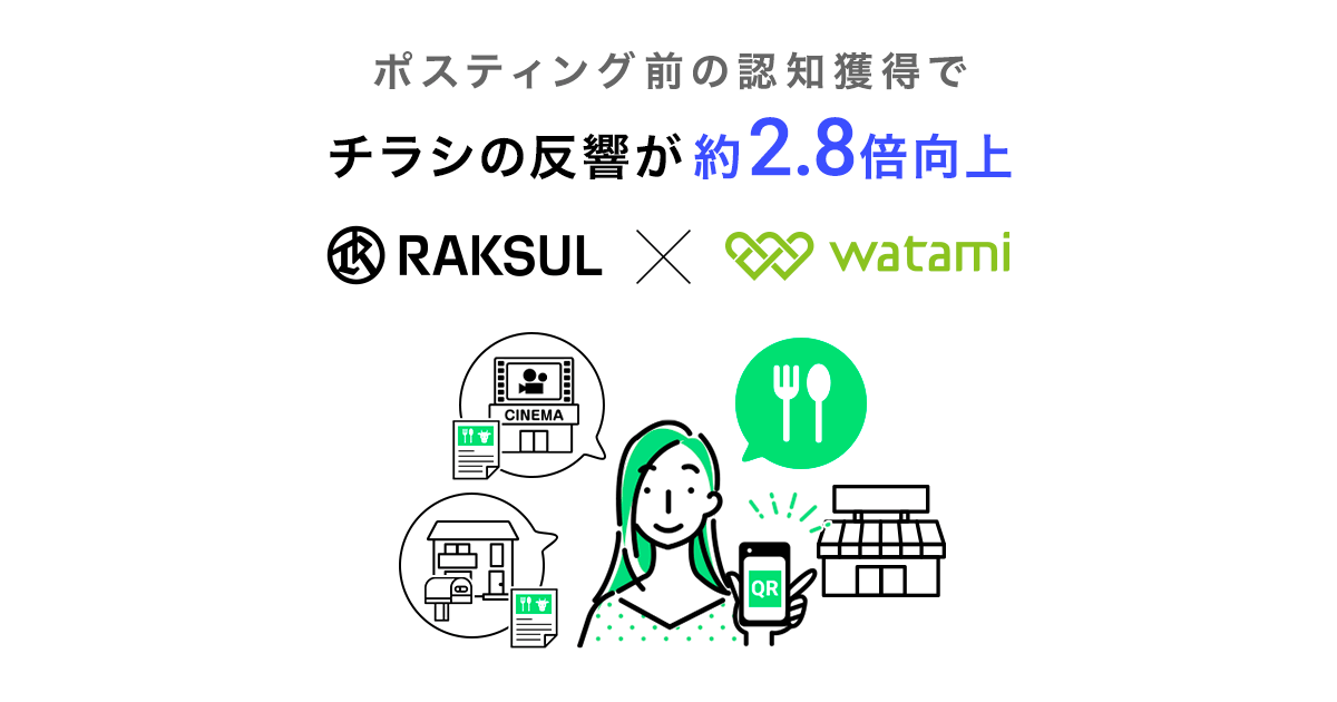 ラクスル株式会社(本社:東京都品川区、代表取締役社長CEO:松本恭攝)と、ワタミ株式会社(本社:東京都大田区、代表取締役会長 兼 社長:渡邉美樹)はチラシのポスティングに関するOMOマーケティングの実証実験にて、ポスティング前に認知を獲得しておくことで効果が向上する傾向を発見したことをお知らせいたします。