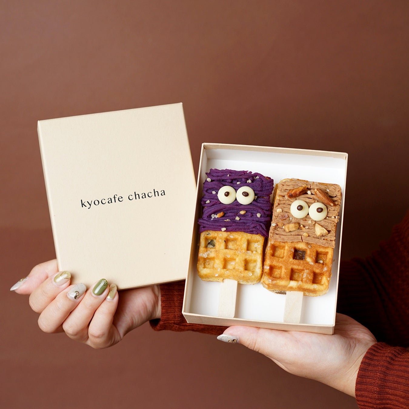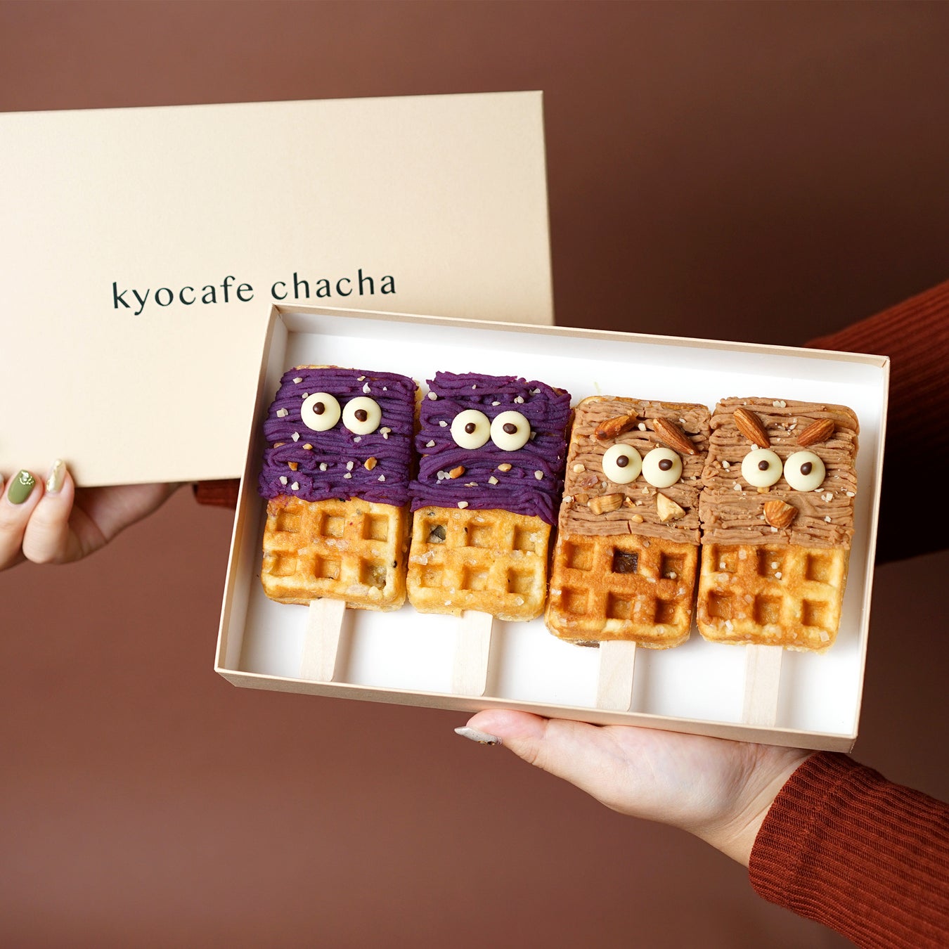 ハロウィンパーティーにはもちろん、大切な方への秋のギフトとしてお贈りいただくのもおすすめ。京ワッフルがハロウィンシーズンのおやつ時間に”きゅん”をお届けいたします。