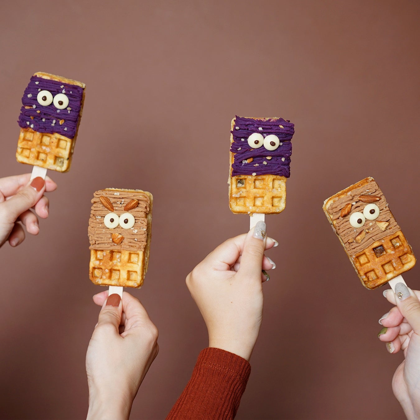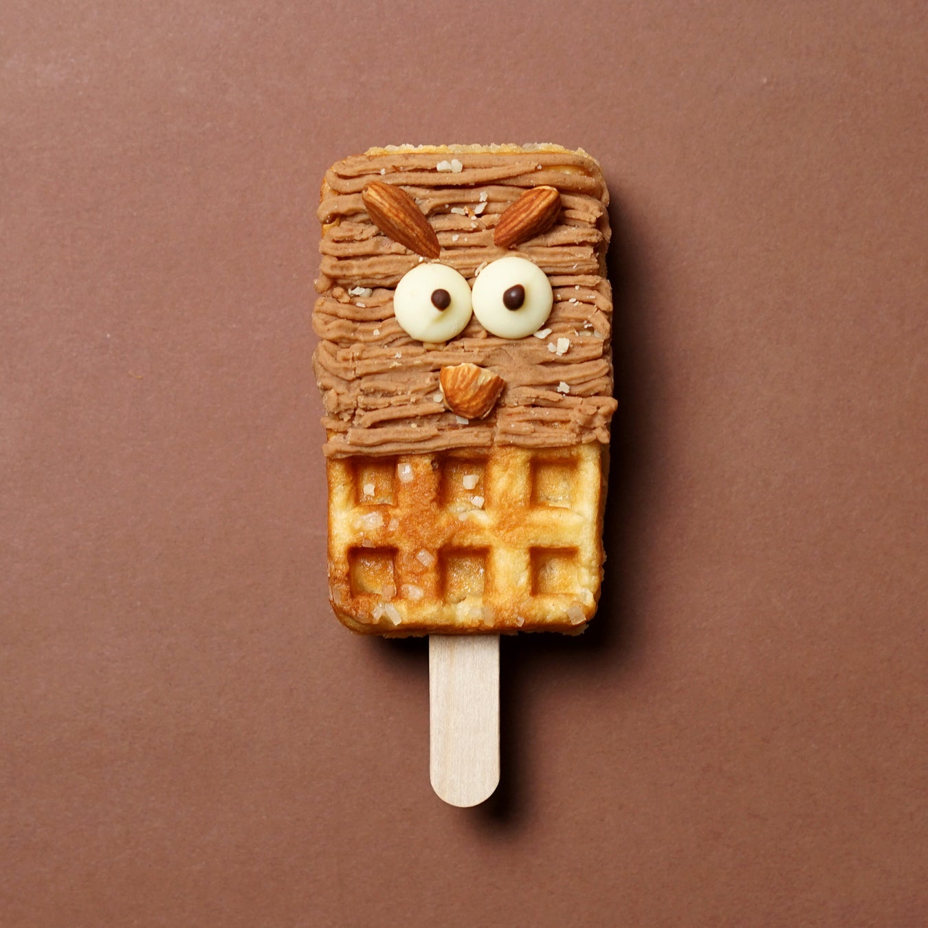 まゆげやヒゲ・鼻に見立てたアーモンドにより、表情豊かなワッフルをお楽しみいただけます。