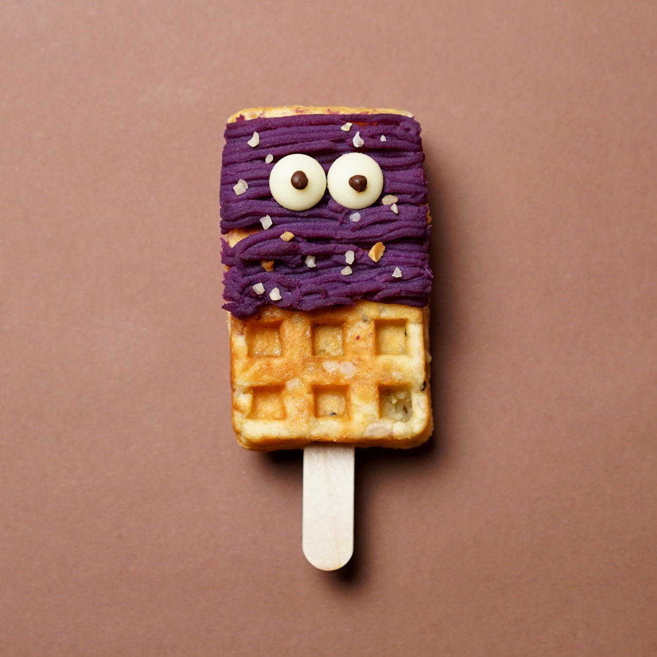 細かく絞ったペーストとキョロっとした目は、ちょっとおっちょこちょいなミイラをイメージ。