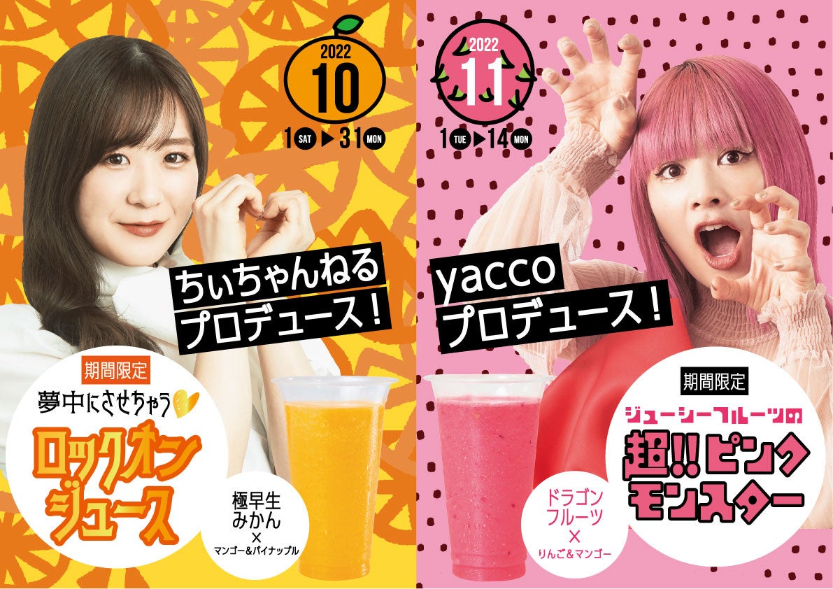 青木フルーツホールディングス株式会社(本社:福島県郡山市、代表取締役会長兼社長:青木信博)は、「果汁工房果琳」をはじめとした作りたてのフルーツジュースを提供するフルーツジュースバー全店(186店舗)にて、17LIVE株式会社(東京都港区、代表取締役:永野敬明)が運営するライブ配信アプリ「17LIVE」のライバー(ライブ配信者)「ちぃちゃんねる」さんと「yacco」さんがそれぞれプロデュースしたドリンクを2022年10月1日(土)より期間を分けて販売いたします。また、併せて同期間、「17LIVE」のライバー「絵かき MEG♀」さんと「革命のパンダ」さんがそれぞれデザインしたオリジナルカップスリーブの配布も実施いたします。