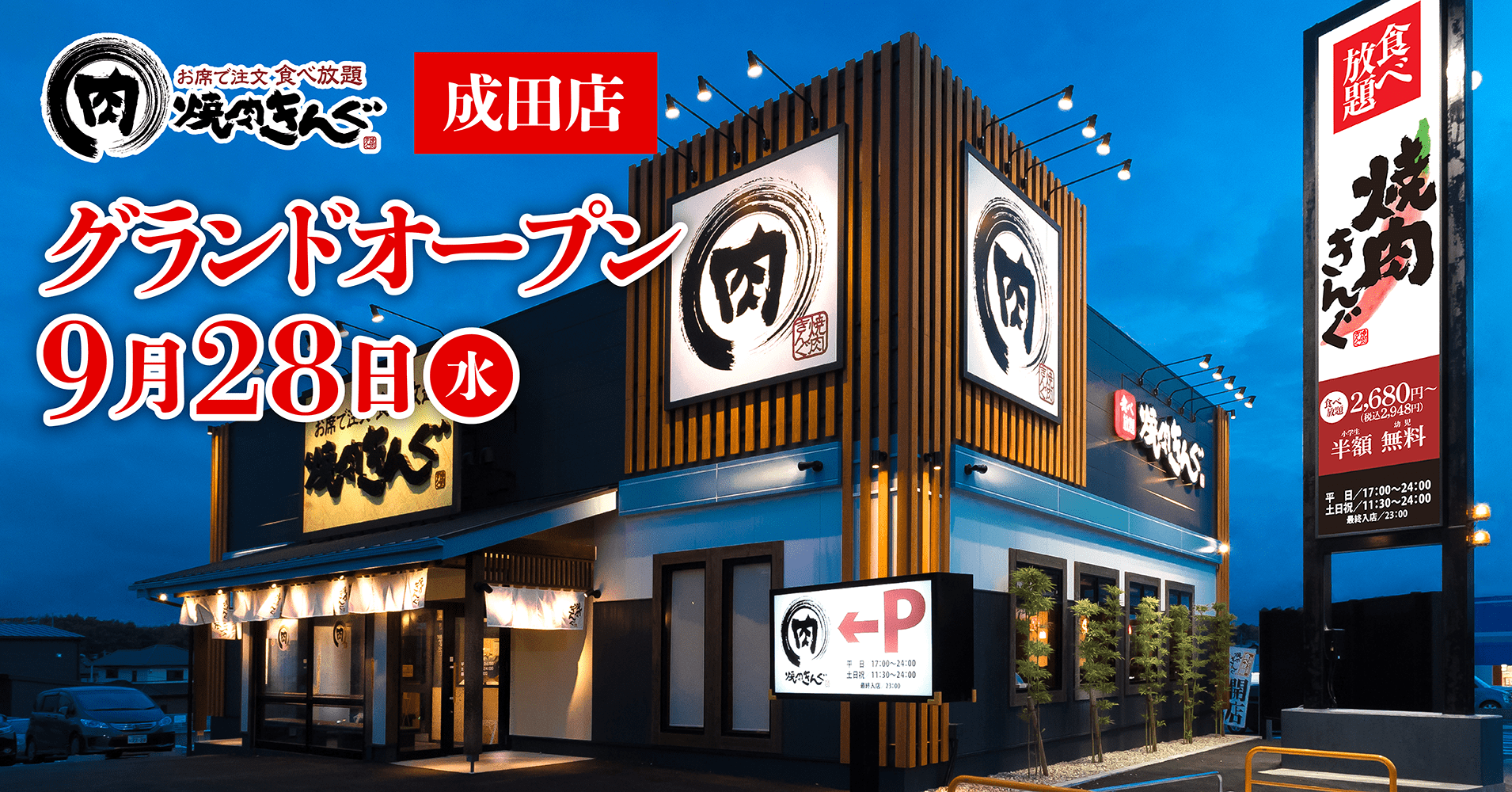 - 『焼肉きんぐ 成田店』が2022年9⽉28⽇(水)グランドオープン!