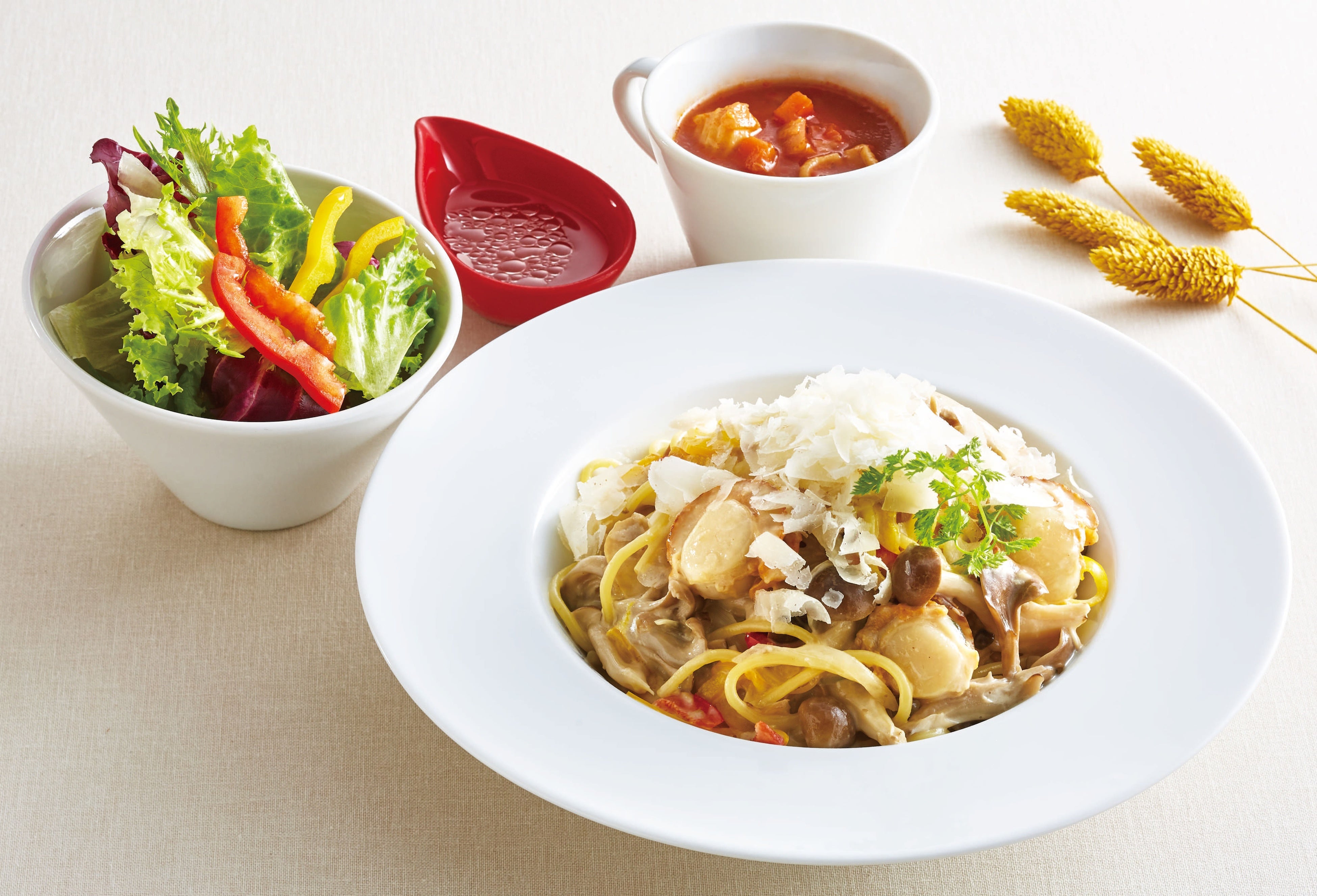 香り高いポルチーニクリームに旬のきのこをたっぷりと使用しました。