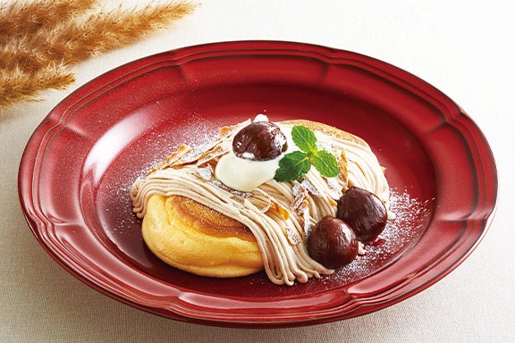 「栗薫る モンブランパンケーキ」とドリンクをセットにしたお得なメニューをご用意しました。