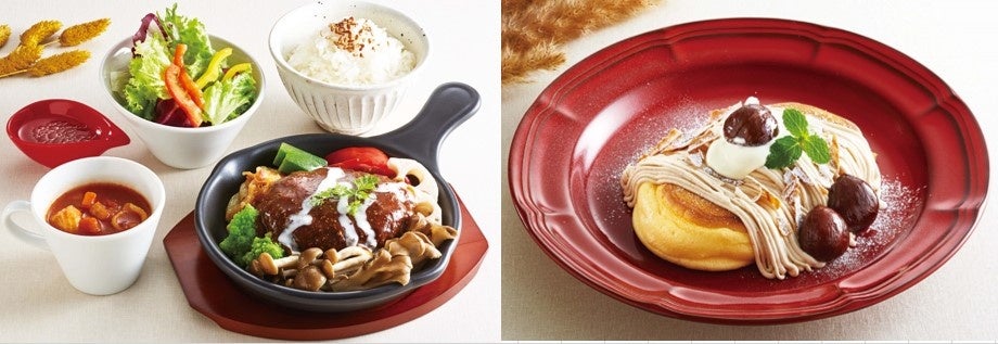 今回のフェアでは、旬のきのこやレンコンなど7種類を使用し、食欲をそそる濃厚で奥深い味わいの特製ソースをかけた「並木街風 Chef’sハンバーグ」や、栗の渋皮煮を贅沢に使用した「栗薫るモンブランパンケーキ」などをご用意しました。