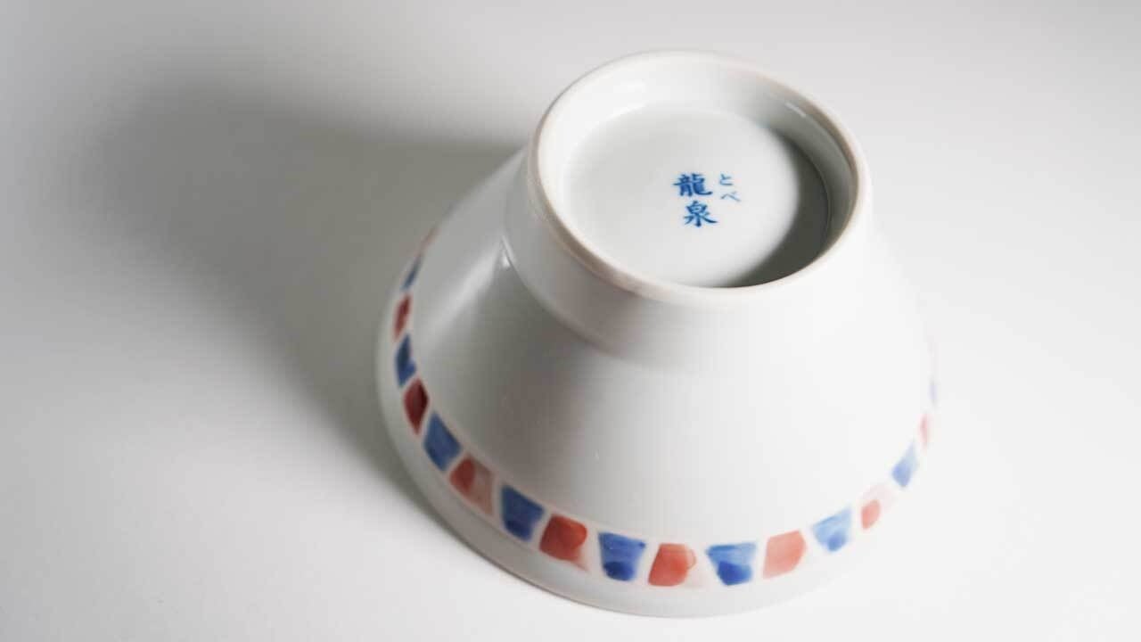 コラボ商品の茶碗と丼は、1つ1つすべて手作り、色付けも1つ1つ手作業で行います。なんと特別に、FMマルシェとの限定コラボ商品として、龍泉窯さんにFM愛媛コーポレートカラー(青×赤)のモザイクシリーズを製作していただきました!