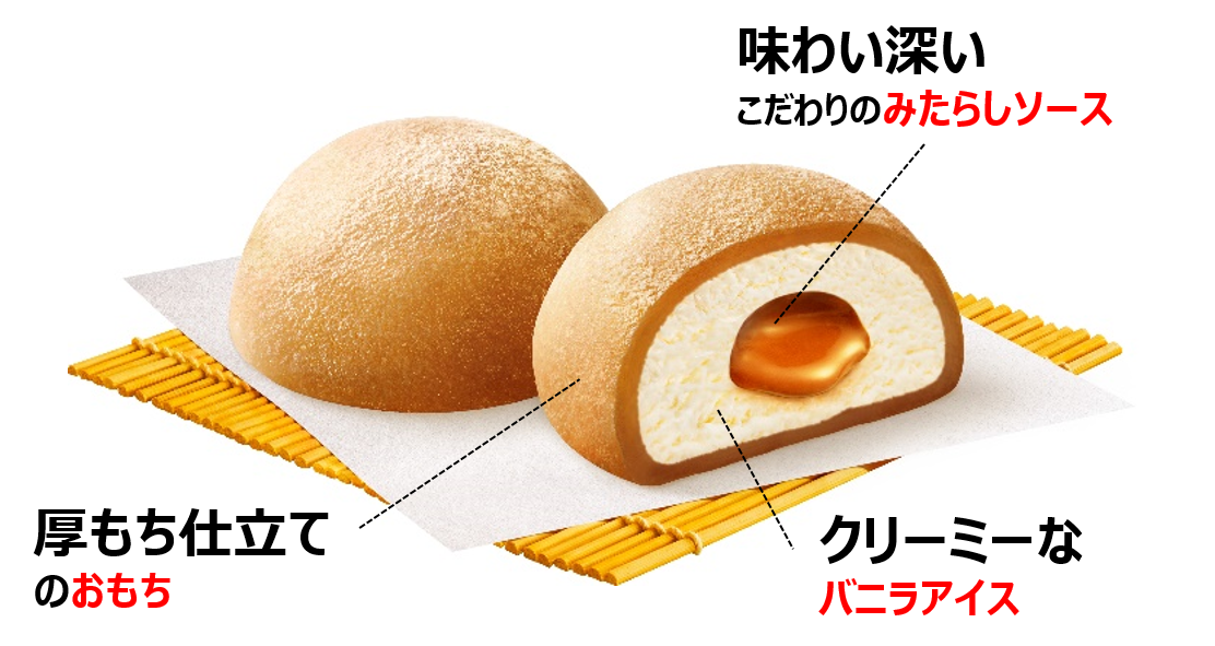 - “みたらしソース”は隠し味に生姜と黒蜜を使用することで風味豊かで深みのある味わいを実現しています。そんなこだわりの「雪見だいふく」をお楽しみください。