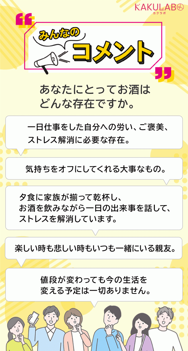 今回の酒類の値上げに対して、愛飲家たちは家飲みでのお酒の費用を節約するのでしょうか。