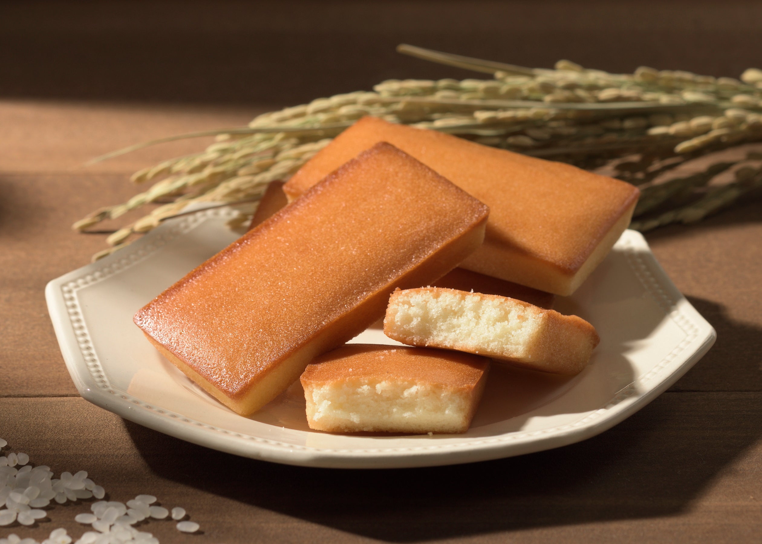 米粉を使用した、もっちり、しっとり、新食感のフィナンシェです。もっちりとしたやさしい食感から米粉の素朴な味わいと、アーモンドの香ばしさ、バターの芳醇が広がります。