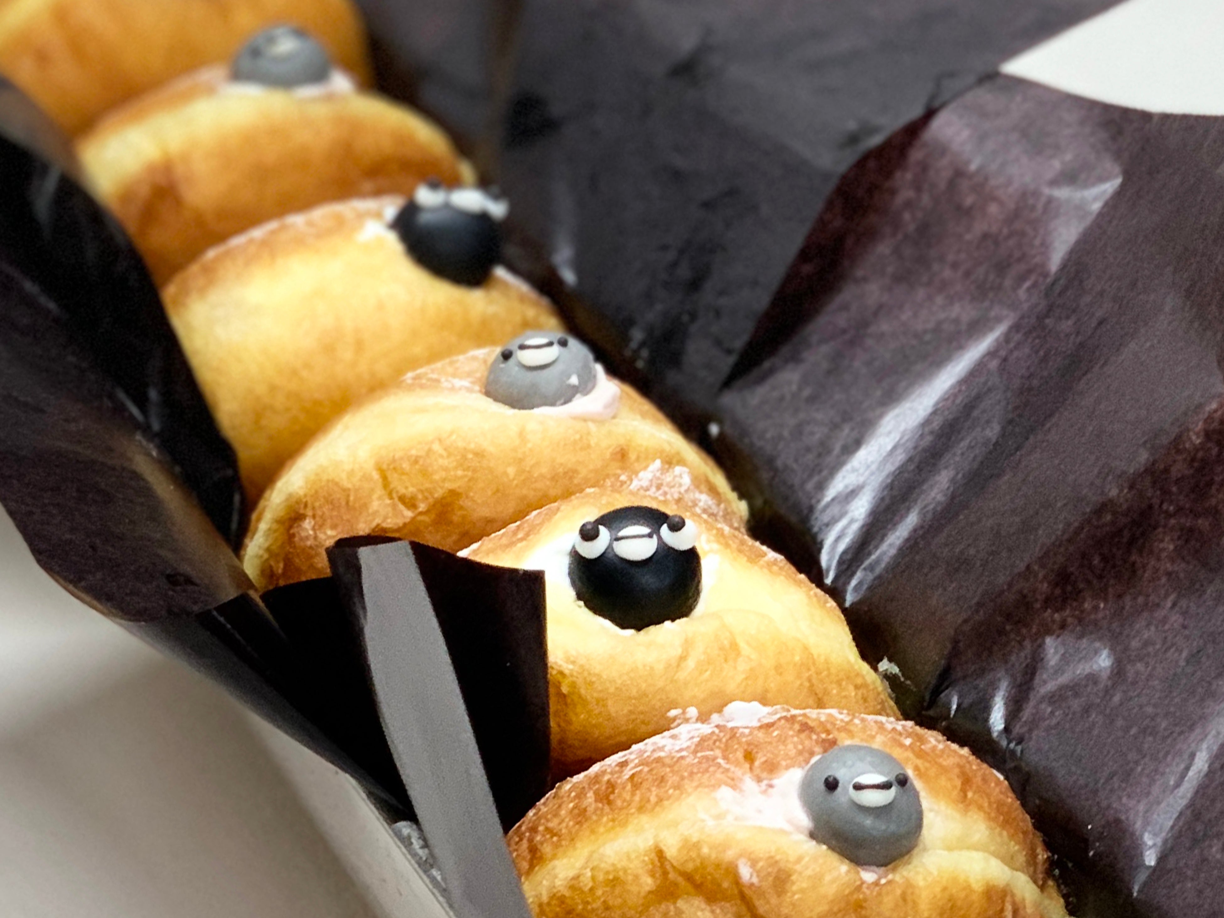 ドーナツを販売いたします。Suicaのペンギンと子ペンギンが可愛らしく顔を出したドーナツのセット。ブリオッシュ生地を使用したふわふわのとろけるような食感に仕上がり、甘さ控えめなホテル特製こだわりのクリームとの相性はくせになる味わい。