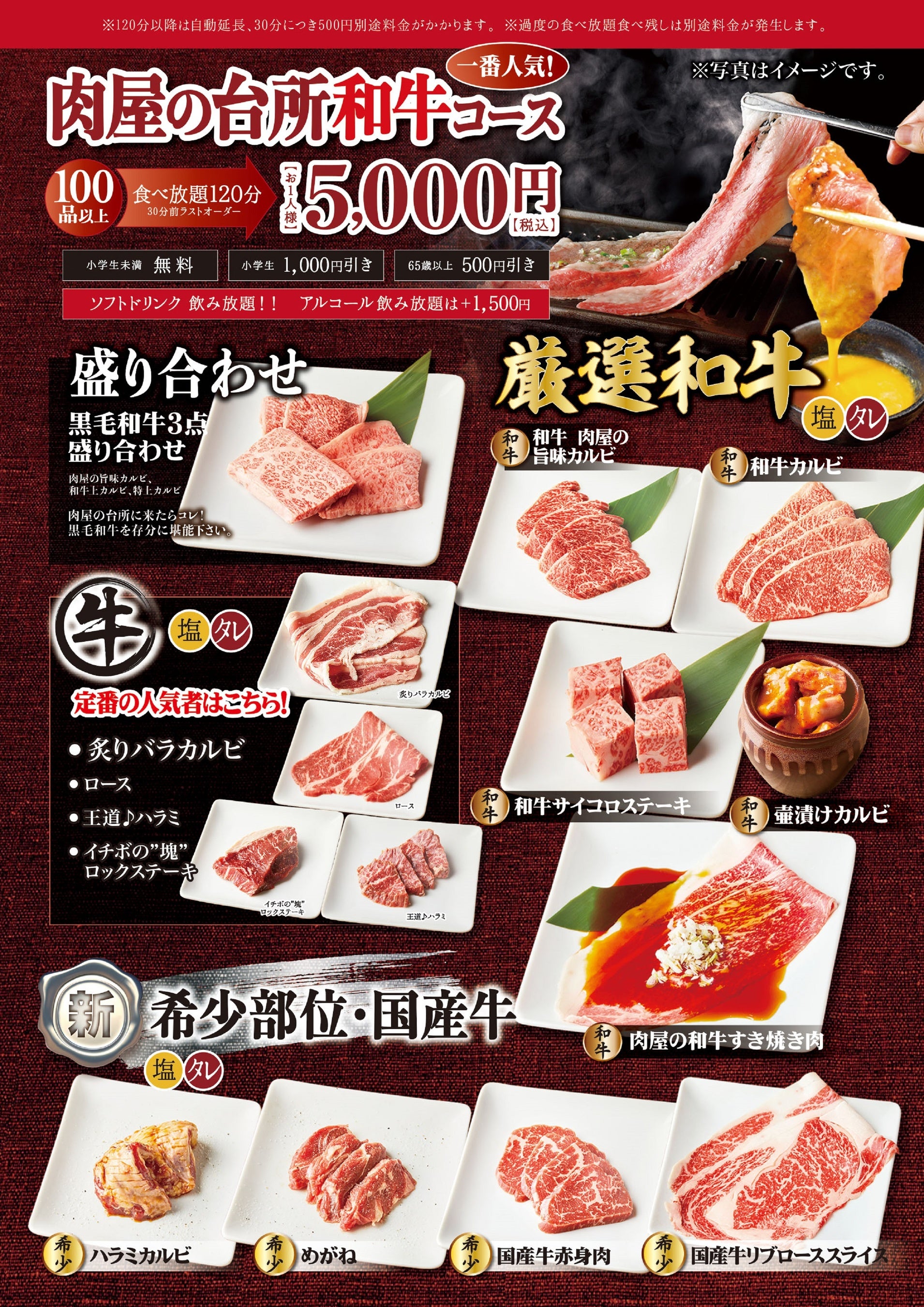 肉屋の台所和牛コース全100品以上120分5,000円(税込み)を