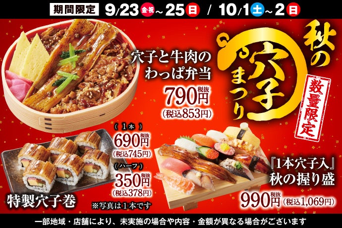 持ち帰り寿し店の「小僧寿し」「茶月」を運営する株式会社小僧寿し(本社:東京都中央区 代表取締役社長 良本 宣之)は、持ち帰り寿し店「小僧寿し」にて、9月23日(金・祝)~25日(日)・10月1日(土)~2日(日)の期間限定で、「秋の穴子まつり」を開催いたします。