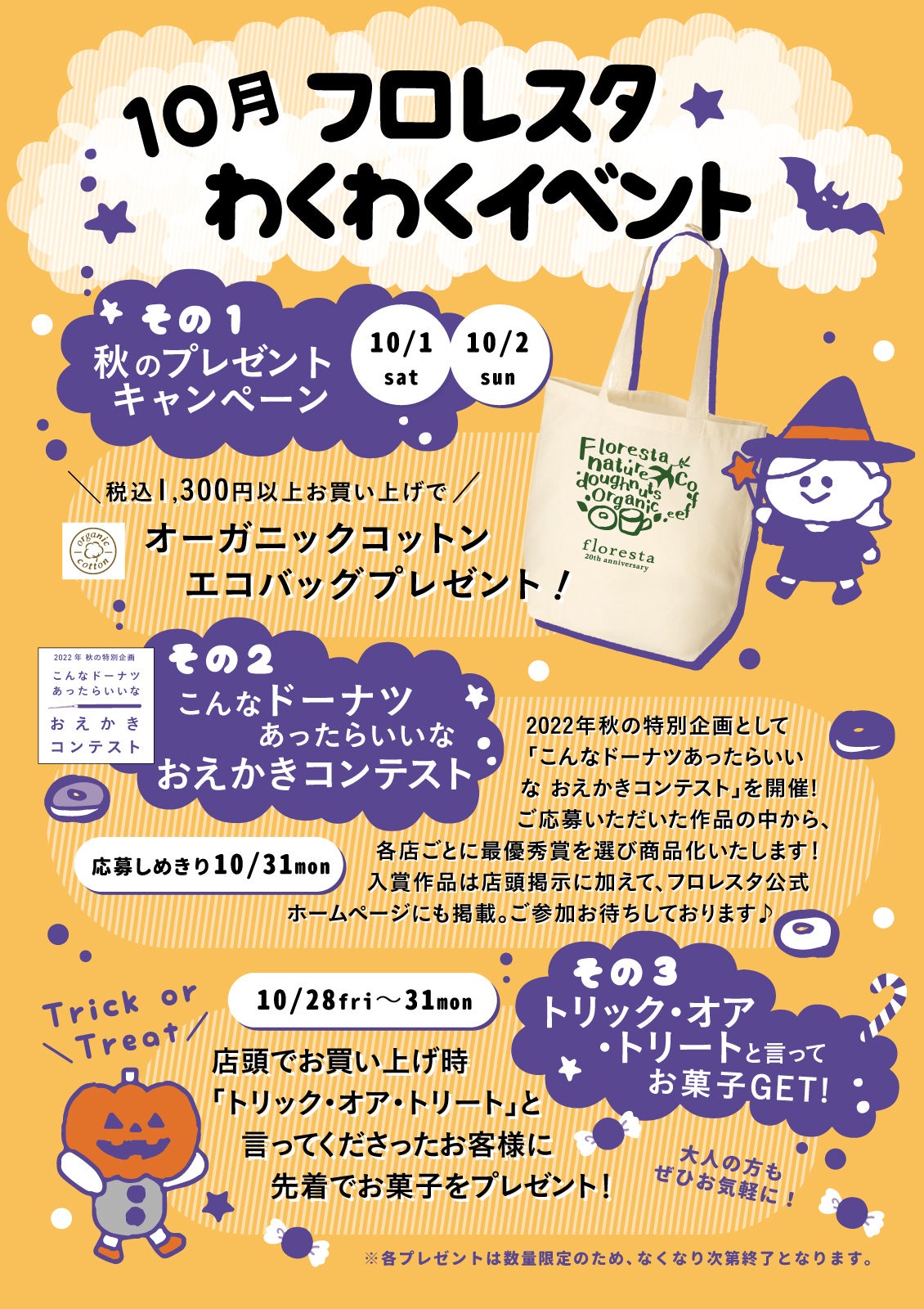 株式会社フロレスタ(本社:大阪市浪速区/代表取締役社長:辻尾吉厚)は、2022年10月一部を除くフロレスタ各店にて秋のワクワクイベントを実施します。