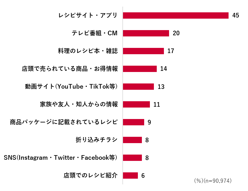 夕食の献立の参考にする情報は「レシピサイト・アプリ」が45%で最多