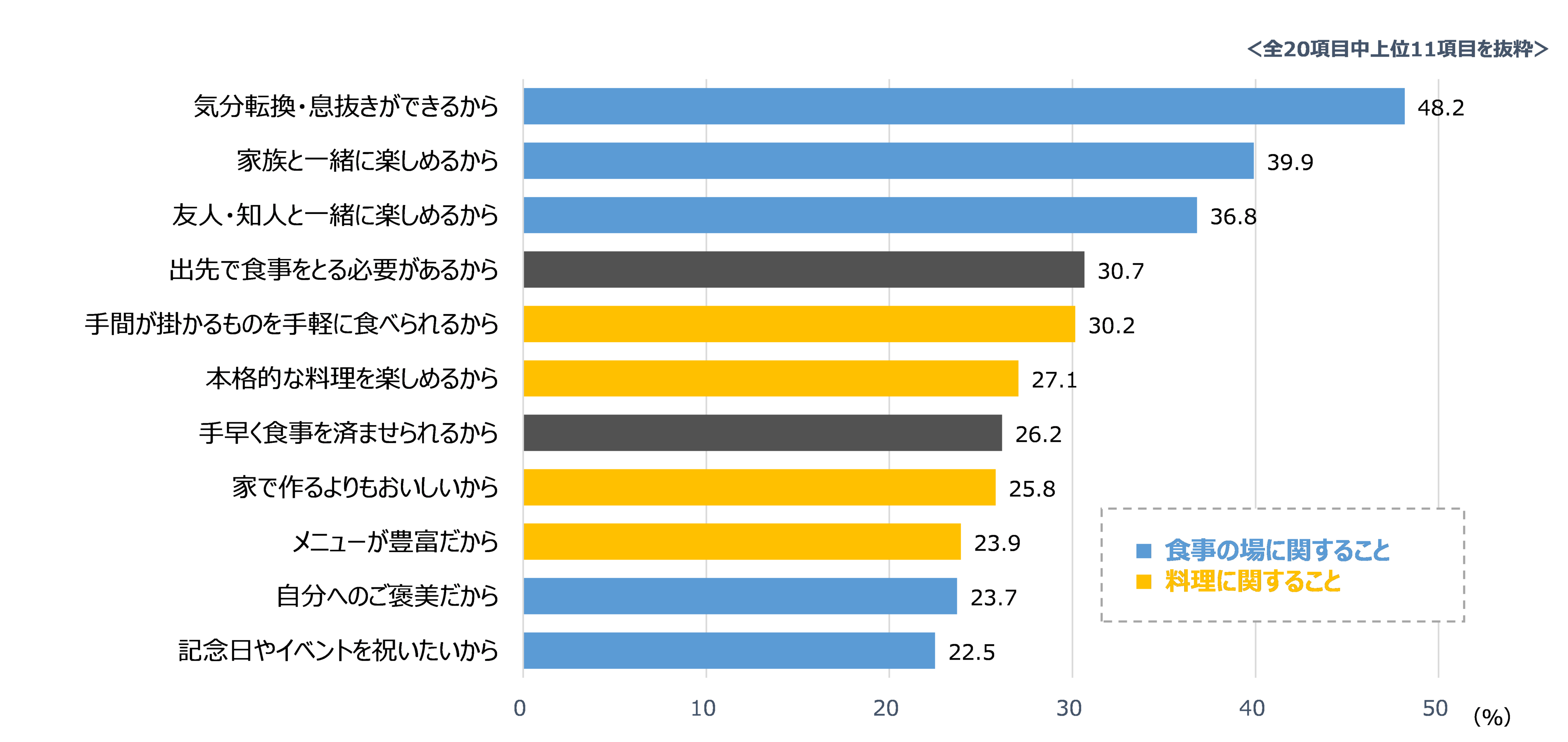 - 外食の理由は、リフレッシュや人と一緒に楽しむため