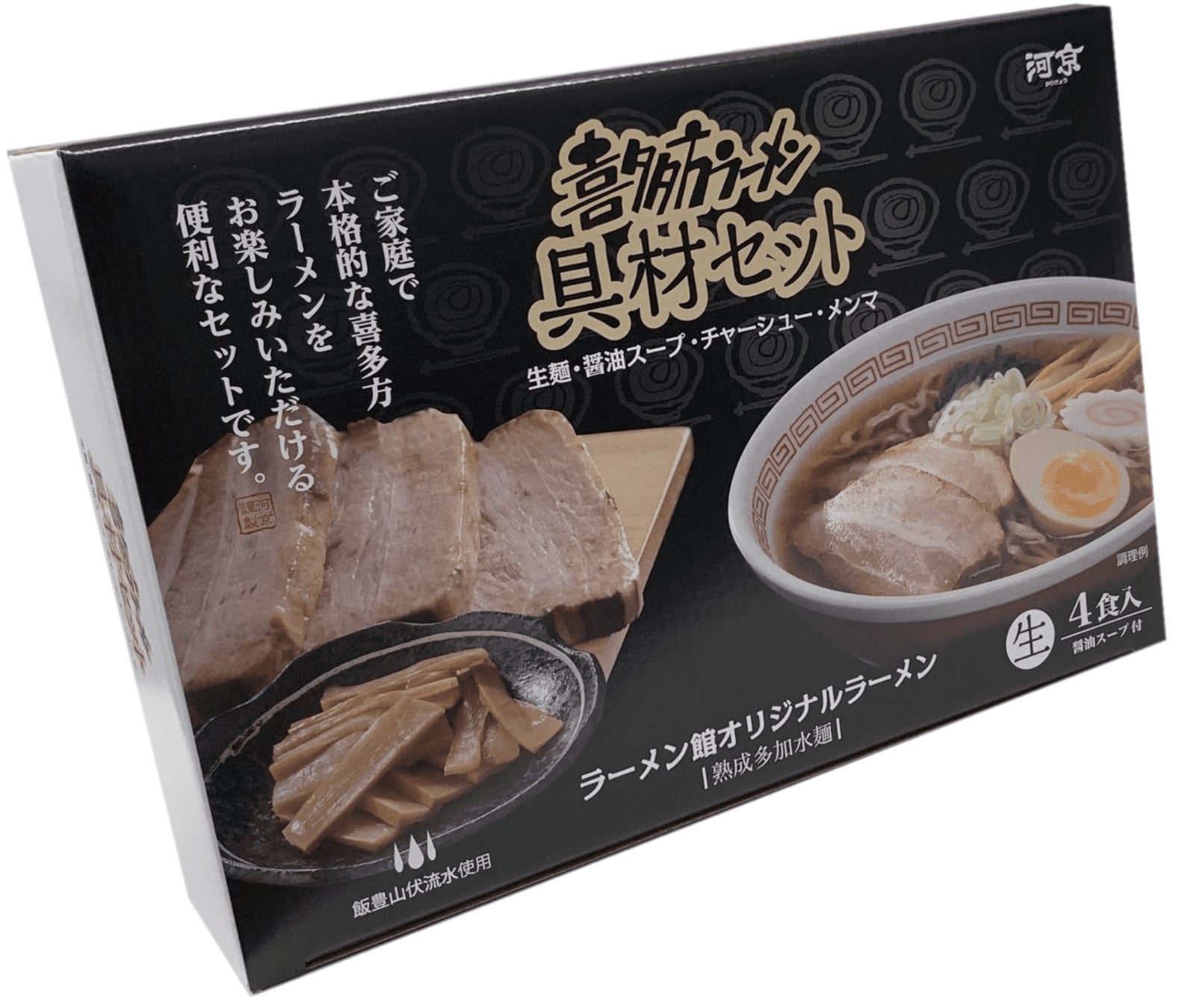 昭和31年、 福島県喜多方市にて山菜加工の製造販売を開始し、 きのこの缶詰の加工・販売を経て喜多方ラーメンの麺の製造・販売を開始した株式会社河京が、 平成10年に直営店としてオープンさせた会津喜多方ラーメン館本館です。 河京のお土産ラーメンはもちろん、製造直売の自家製チャーシューや地酒、雑貨やお菓子、お漬物などのお土産品を豊富に取り揃えています。