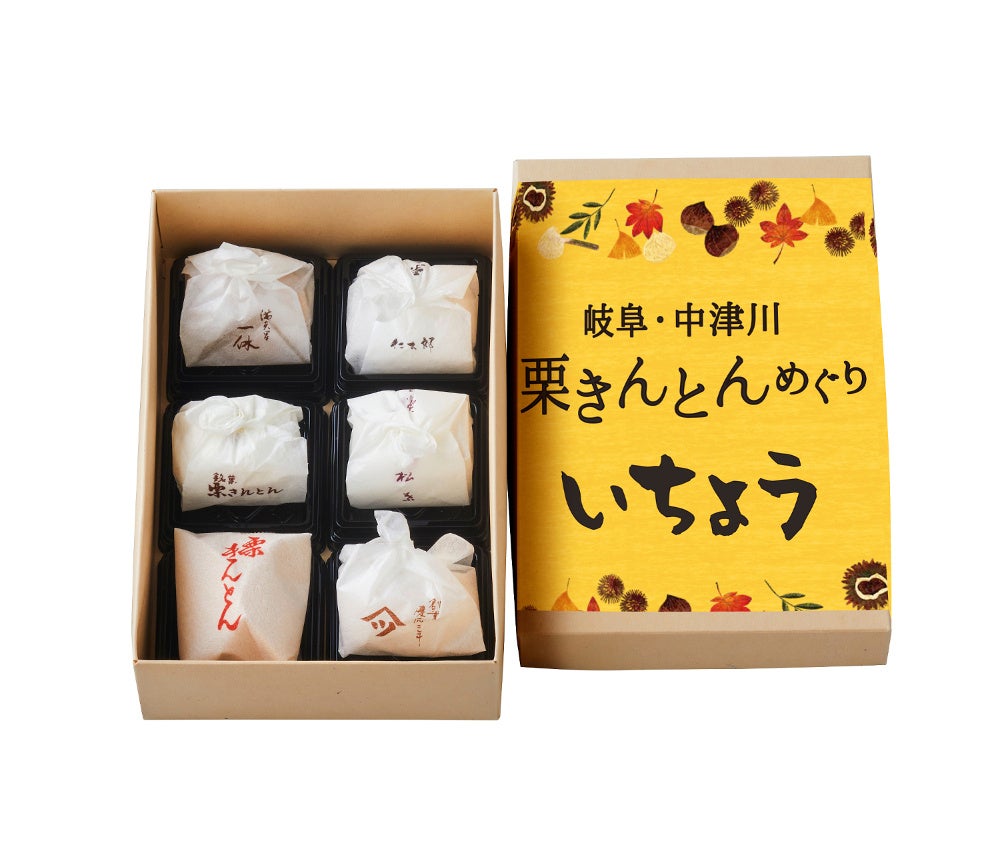 中津川の6店舗の栗きんとんを1粒ずつ詰め合わせたセットができました!