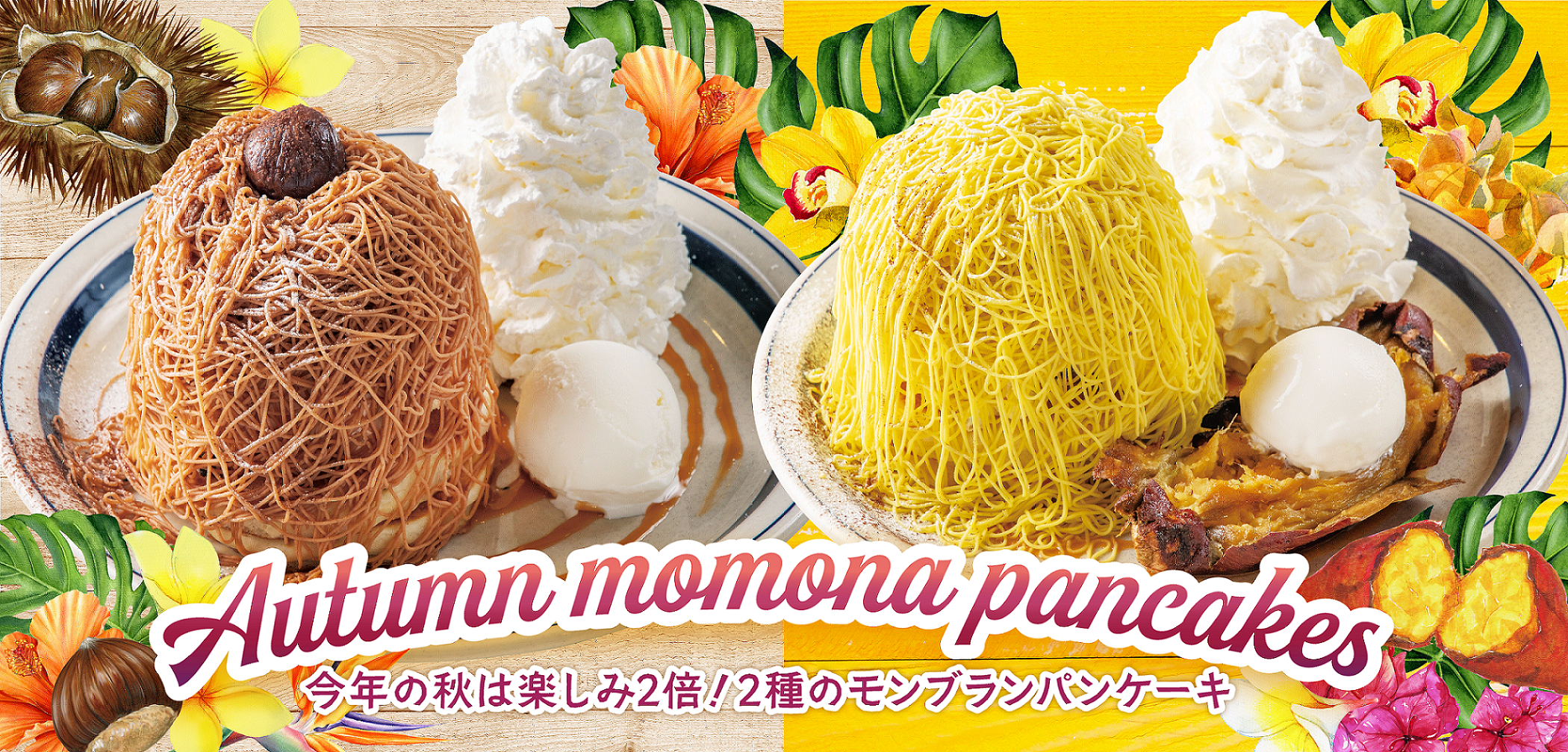 株式会社トリドールジャパン(本社:東京都渋谷区、代表取締役社長:粟田貴也)が展開するハワイアンパンケーキカフェ「コナズ珈琲」は、2022年9月28日(水)から11月下旬までの期間限定で「Autumn Momona Pancakes」フェアを開催いたします。第一弾として9月28日(水)~10月31日(月)まで昨年大好評だった『コナズモンブランパンケーキ』を販売、第二弾として11月1日(火)~11月30日(水)までさつまいもをクリームと焼き芋の2種類のテイストで楽しめる新作『スイートウアラパンケーキ』を販売いたします。