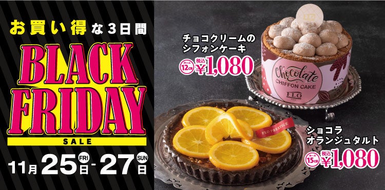 関東を中心に洋菓子・洋惣菜のテイクアウトショップ114店舗(2022年9月現在)を展開する株式会社フロジャポン(本社:東京都武蔵野市)が運営するフロプレステージュでは、11/25(金)~27(日)の3日間「FLO ブラックフライデー」を開催します。