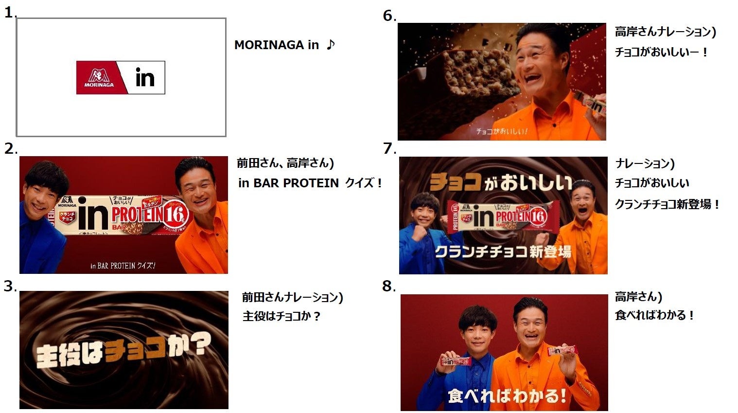 それに対して高岸さんは高速腹筋をしながら、「わからないけど・・・チョコがおいしい!」とにこやかに回答。”チョコがおいしい”クランチチョコとして「inバープロテイン<クランチチョコ>」の新登場と、最後は「食べればわかる!」の高岸さんのフレーズで締めくくられます。