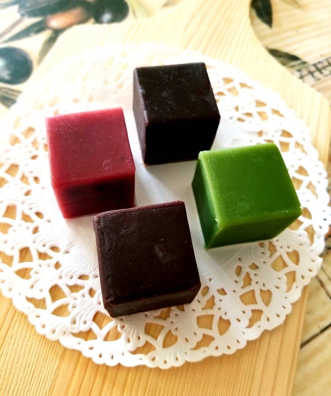 羊羹なのに生チョコのような新食感スウィーツ。ショコラ、オレンジピール、ストロベリー、抹茶の味が楽しめます。