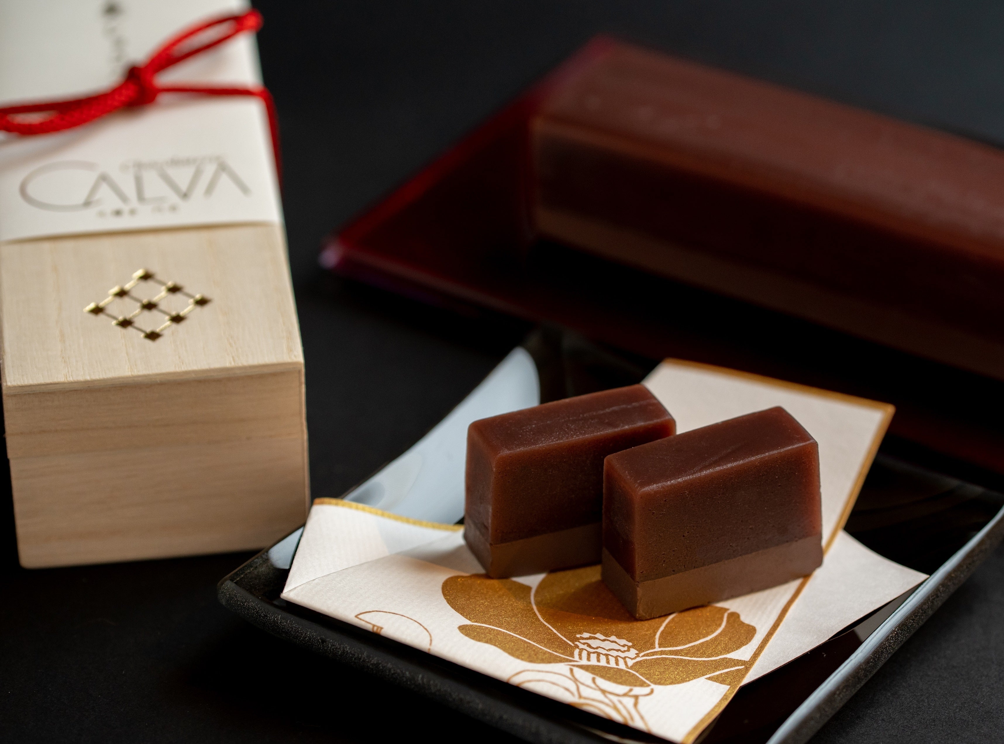蒸し羊羹と水で作ったガナッシュが二層仕立てになった、和と洋を一度に味わえる新しいスウィーツです。
