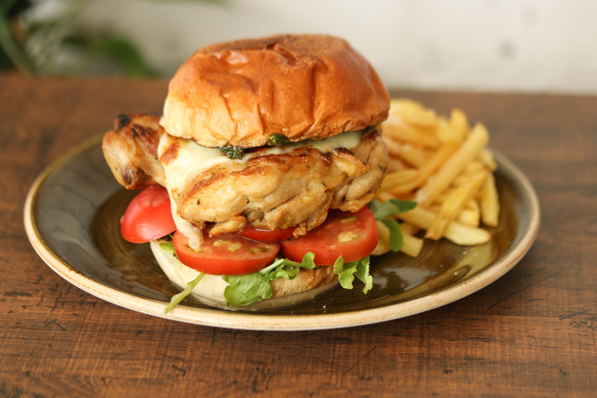 セージ・ローズマリー・唐辛子で辛くスパイシーにマリネした“伊達鶏”に“水牛モッツァレラ”をのせてロースト。ルッコラとフルーツトマト、自家製バジルペーストを塗ったバンズで挟みました。様々な味のハーモニーをお楽しみください。