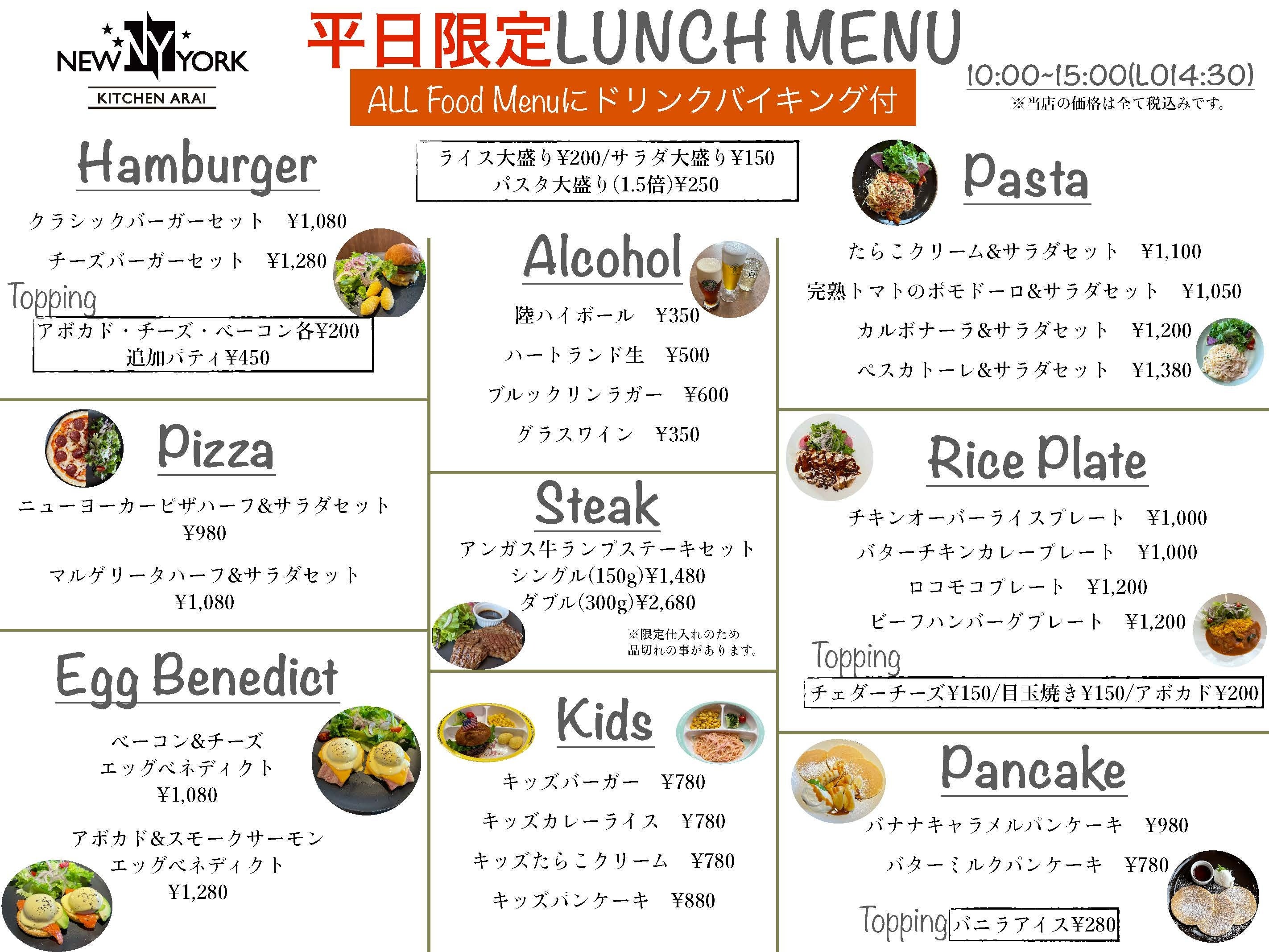 株式会社RAVIPA(代表取締役新井亨 東京都豊島区)の運営するNew York Kitchen ARAI(ニューヨークキッチンアライ)イオンスタイル碑文谷店では、ランチメニューを大幅アップグレード!