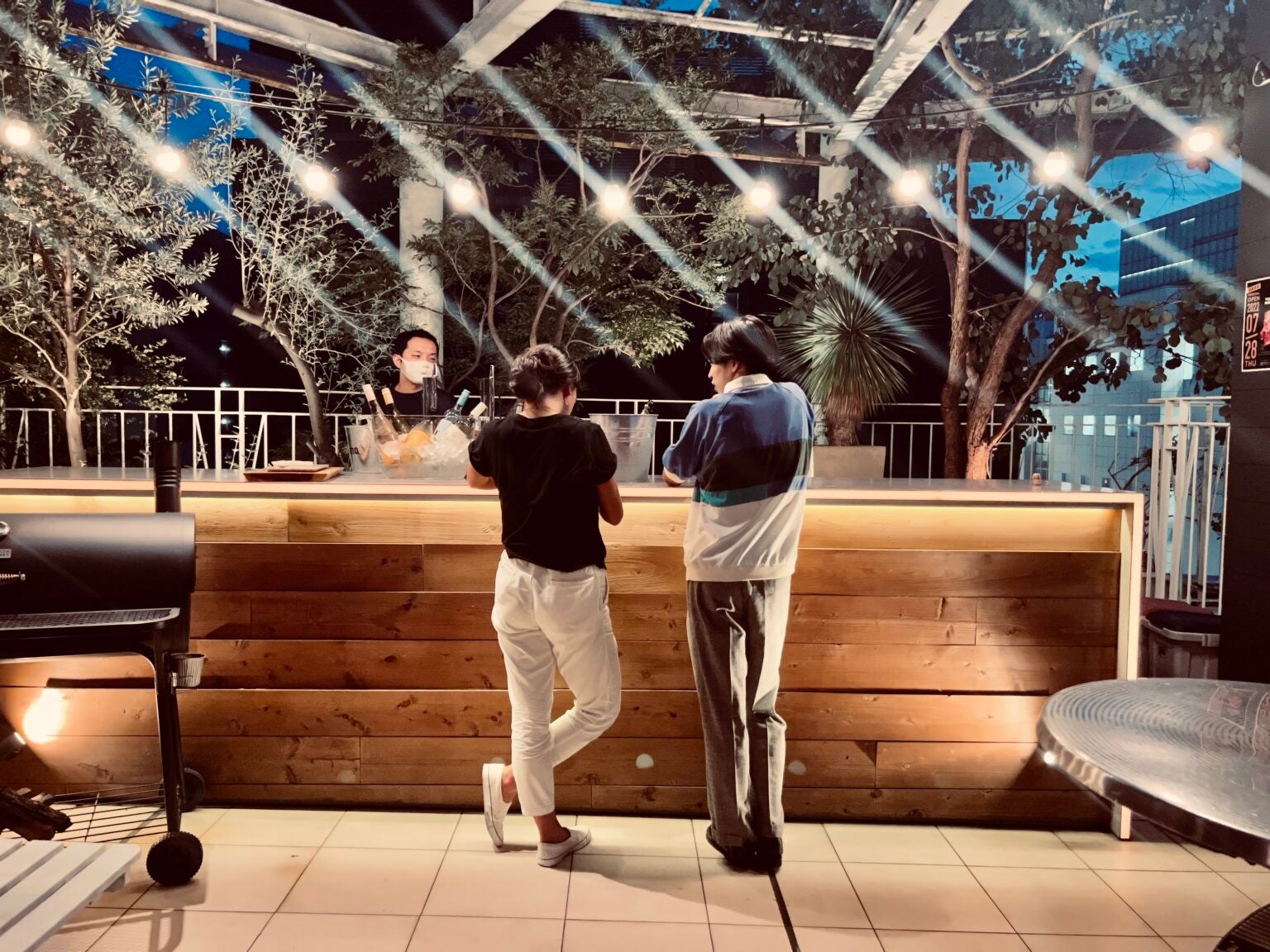 - 会場は、銀座の夜空を楽しめる気持ちの良いBBQテラス