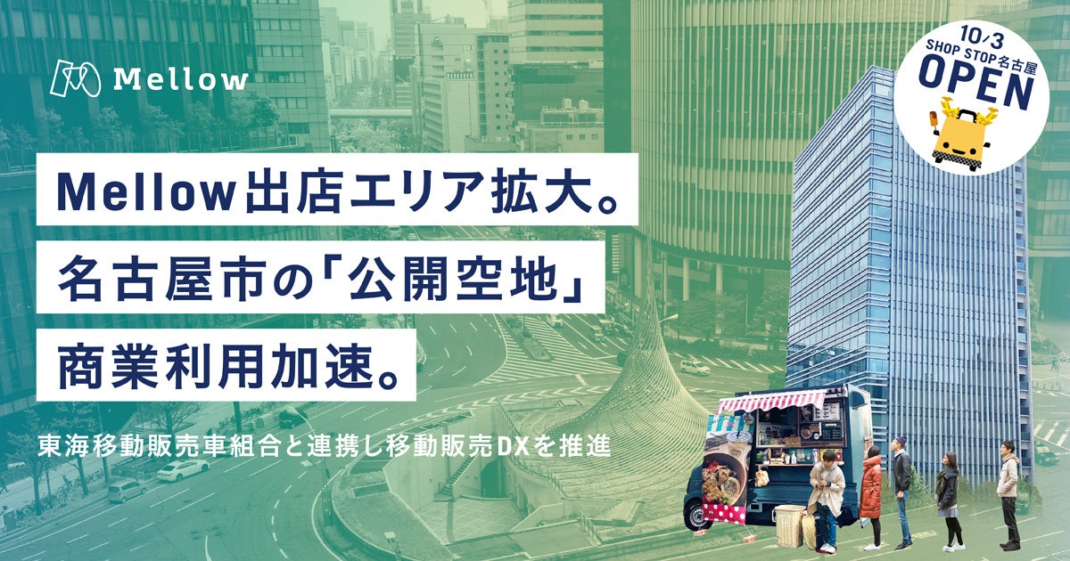 日本最大級のモビリティビジネス・プラットフォーム「SHOP STOP」を展開する株式会社Mellow(本社:東京都千代田区 代表:石澤 正芳、森口 拓也、以下「メロウ」)は東海エリア最大のキッチンカープラットフォーム東海移動販売車組合を運営する株式会社メルカート(本社:岐阜県各務原市 代表:森 智彦、以下「メルカート」)との事業提携を10月1日より開始いたします。この取り組みにより、メロウは名古屋市の公開空地における商業利用を加速させます。