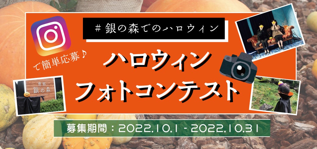 ハロウィンムード漂う恵那銀の森をスタッフだけでなくお客様と一緒に盛り上げていきたいと思い、Instagramで簡単に参加できるフォトコンテストを開催する運びとなりました。