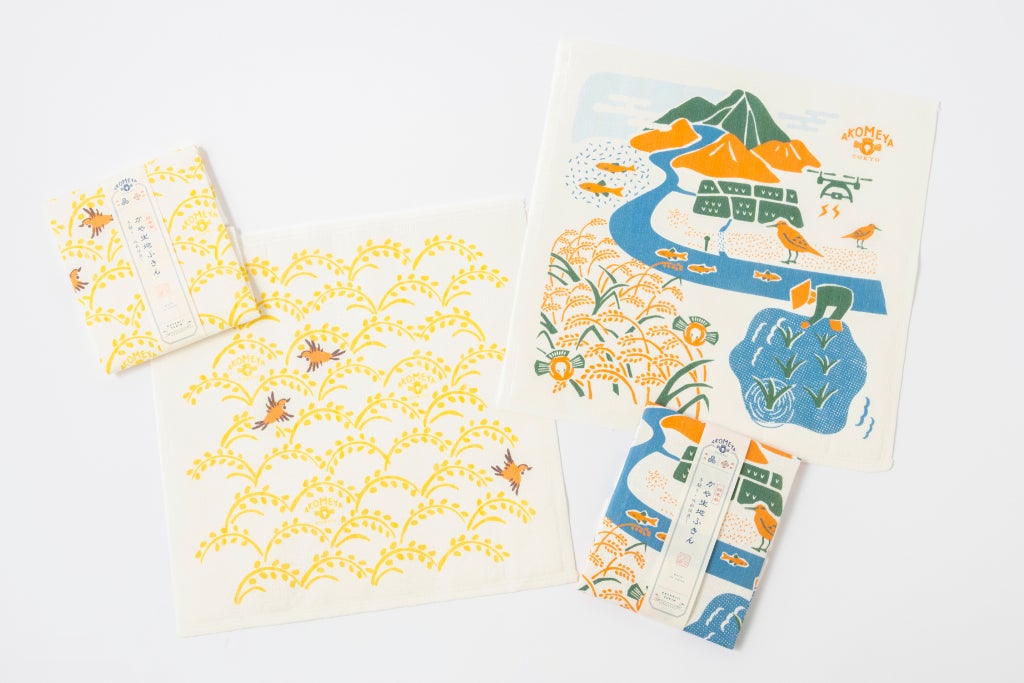 かや生地ふきん(稲穂と雀/里山)各¥605