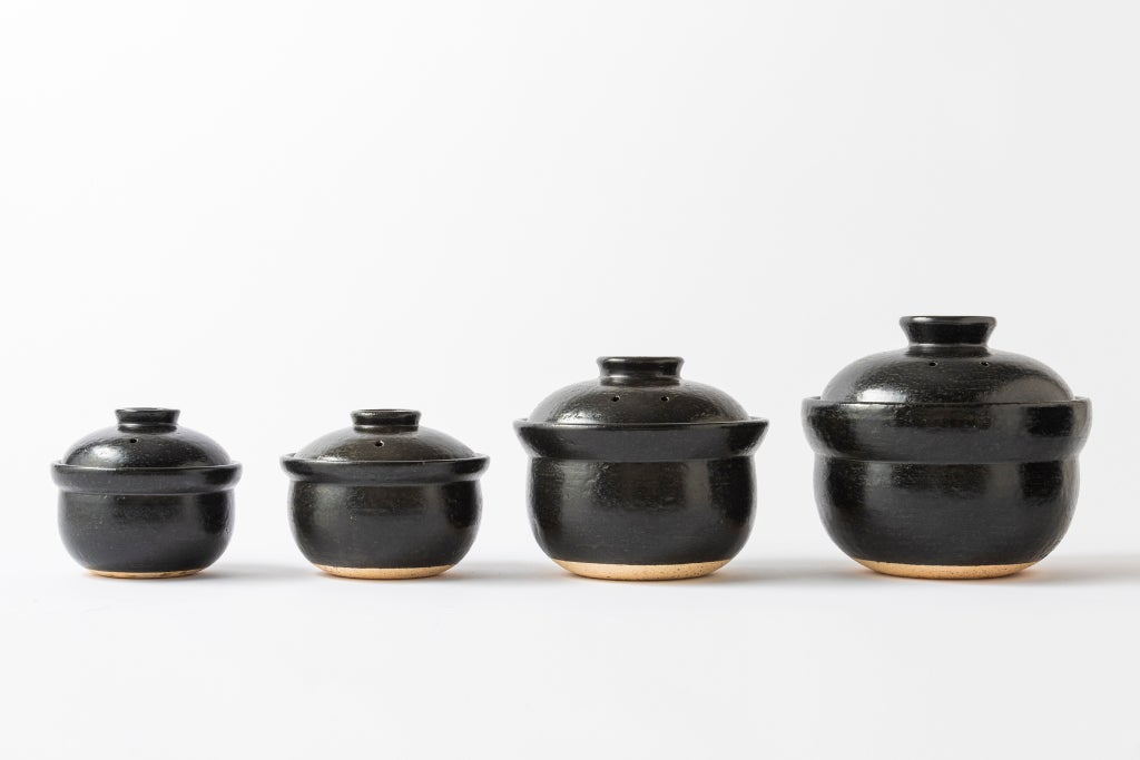 有田焼黒釉ごはん土鍋 1号¥8,800/1.5合¥9,790/3合¥18,480/5号(新宿店・神楽坂店・EC限定)¥36,300