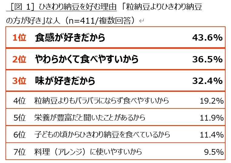 ひきわり納豆好きに聞く、「好きな理由」、1位は「食感」!「絡みやすさ」も高評価