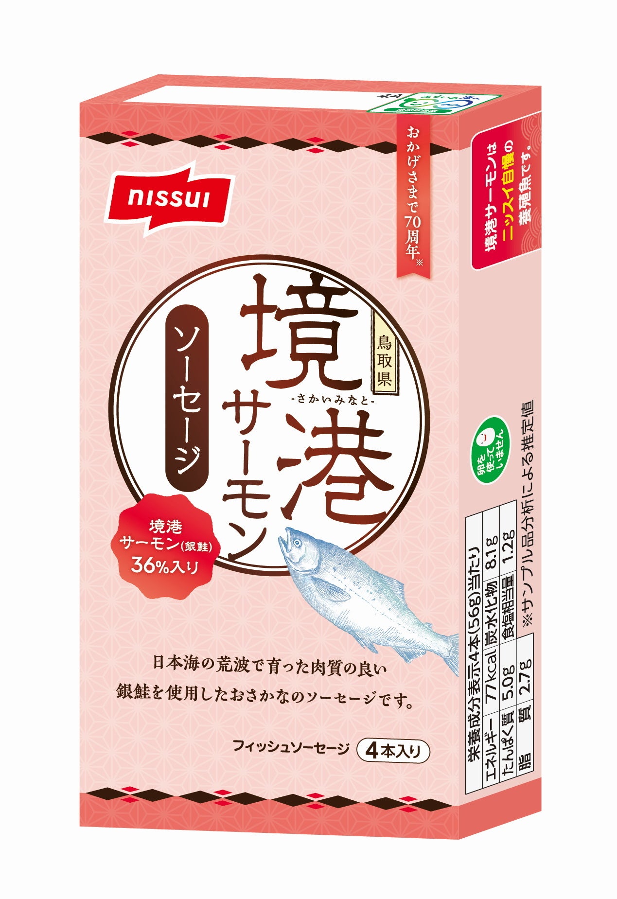 日本水産株式会社(代表取締役 社長執行役員 浜田晋吾、東京都港区、以下「ニッスイ」)は、 ニッスイフィッシュソーセージ70周年記念商品の第二弾として、「境港サーモンソーセージ」を10月1日より数量限定で発売します。また、発売に合わせてツイッターでオープンキャンペーンを実施します。