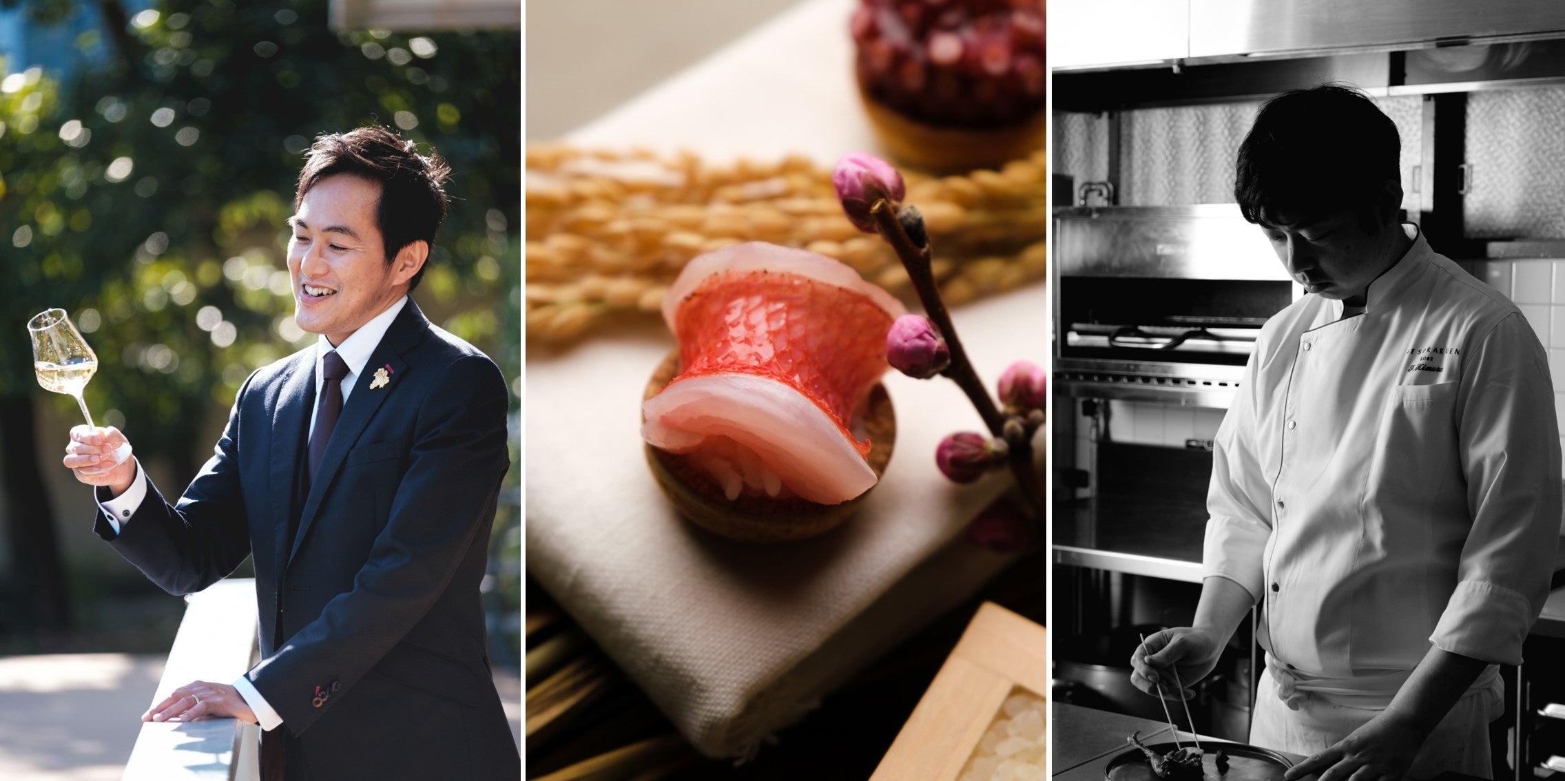 「コシモプリュス」小霜シェフ・ソムリエ小林氏と、THE SORAKUEN「レストラン相楽」シェフ木村・ソムリエ塚元が相互にもコラボして、百年の歴史と6,000坪の敷地を誇る日本庭園「相楽園」を舞台に、“自然・地域・未来”をテーマにした豊かな食体験を提供します。