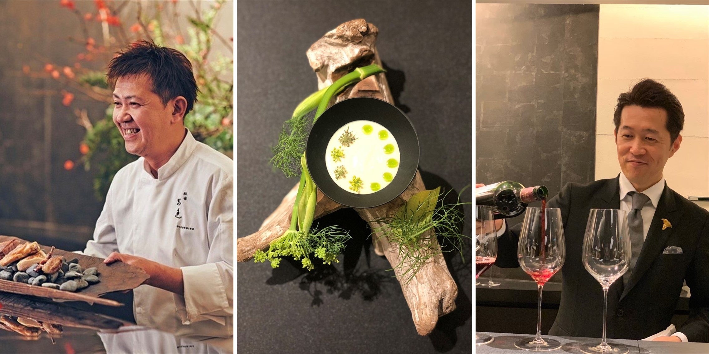 芦屋で愛された「コシモプリュス」は、ミシュラン一つ星を獲得しながら2019年に閉店。その際、短期間ながら在籍していた 現THE SORAKUENのソムリエ塚元は旧知の仲であり、その後もソムリエ小林氏とはワイン勉強会等で研鑽を積み、3年の時を経て今回の刺激的なコラボレーションに至りました。
