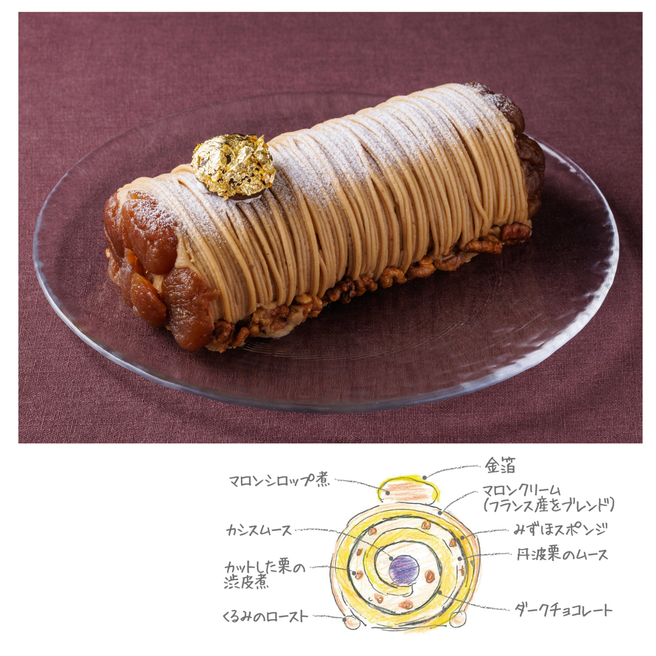 上質な丹波栗を使用した深みのある味わいが特徴のモンブランがクリスマスケーキケーキ。上品な甘さにこだわり、丁寧に裏ごしした、なめらかでたっぷりのマロンクリームを織り重ねました。モンブランクリームに忍ばせたほっくりとした栗の渋皮煮とカシスのムースがアクセント。お口に広がる栗の美味しさを存分にお楽しみください。