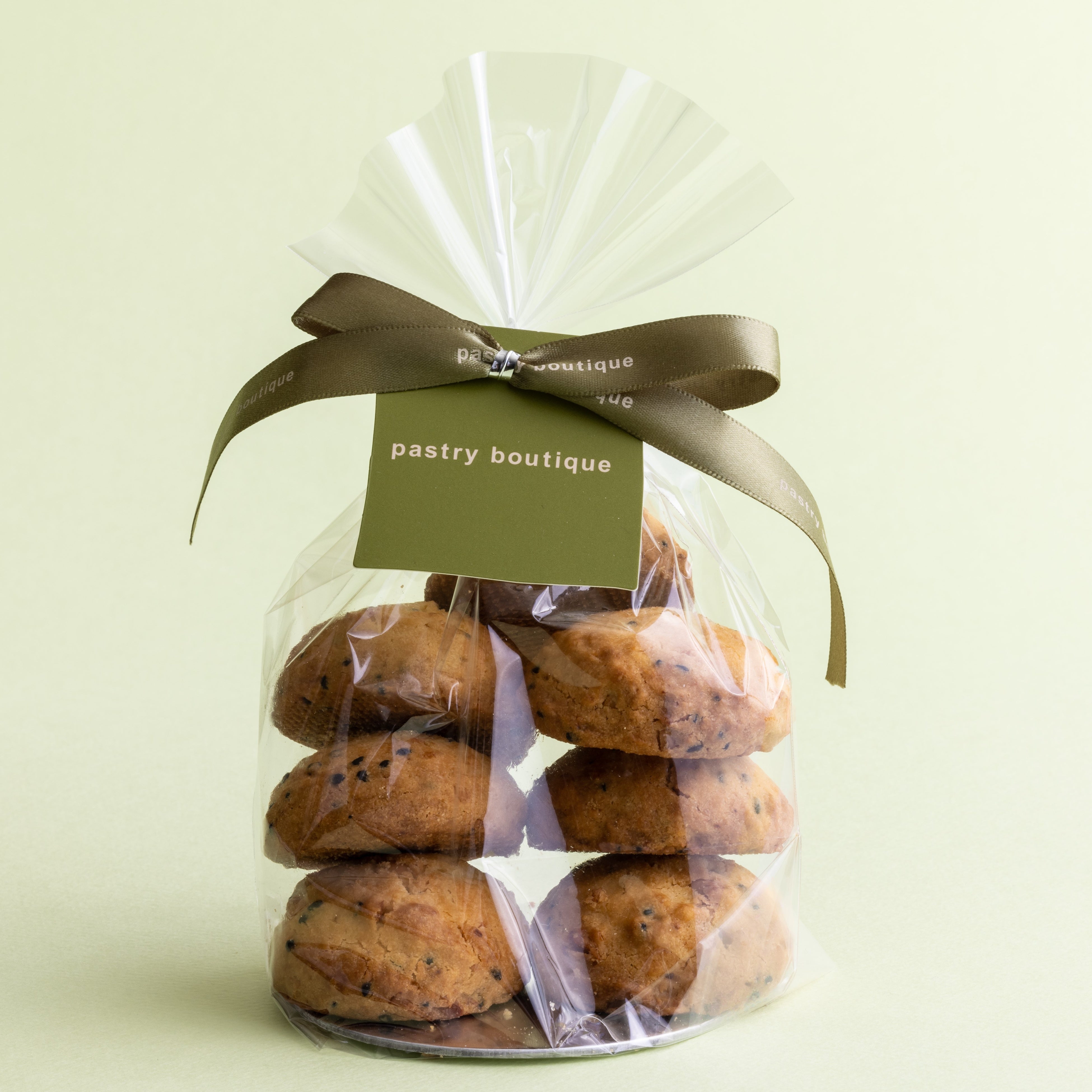 砕いたローストカシューナッツと煎った黒ゴマを練りこんだ贅沢なクッキー。さっくりした食感と香ばしいハーモニーを楽しめます。800円(税込)配送不可