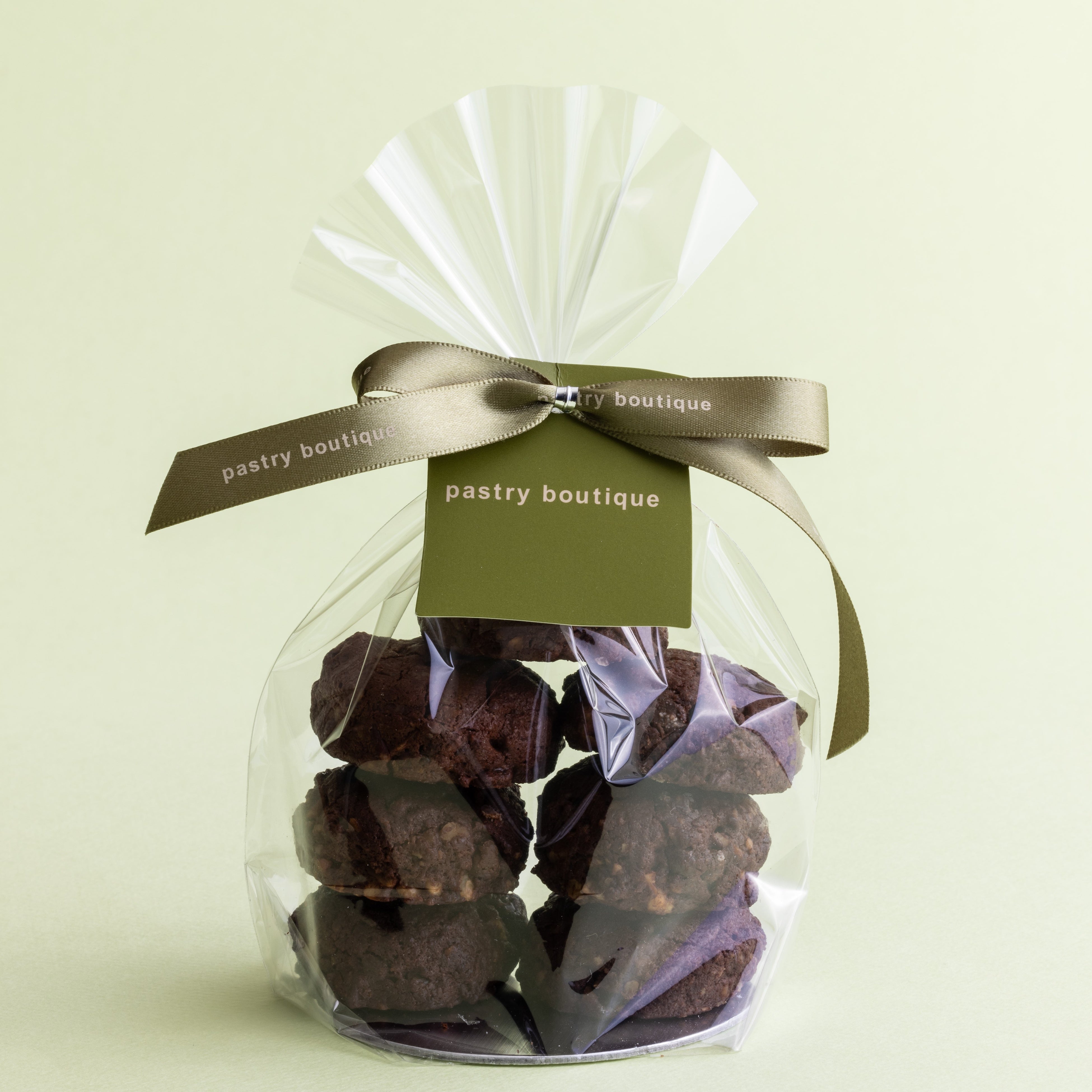 ココアを使わず、ダークチョコレートだけで作ったチョコレートチップクッキー。ダークチョコレートのほろ苦さにチョコレートチップのほどよい甘さを運びます。ピーカンナッツとクルミがアクセントの大人の味わいのクッキーです。800円(税込)配送不可