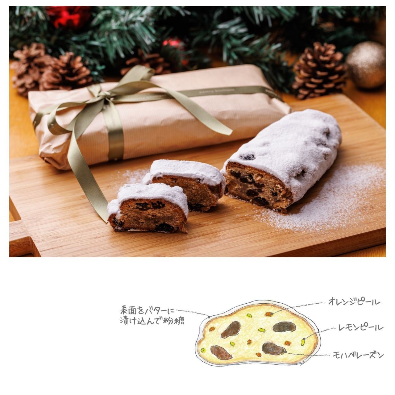 聖夜を待ちわびるドイツの伝統菓子をドイツの正統派ドレスデンタイプでご用意。ラム酒に漬けたドライフルーツとドイツ産マジパン、ローストしたクルミを練りこみ、国産バターをたっぷりとしみこませました。時間が経つほど、しっとり熟成し、深みが増して、味わい深く。フルーツとスパイスの芳醇な香りはコーヒーや紅茶はもちろん、ワインとの相性も抜群です。クリスマスの日を心待ちにしながら、少しずつスライスしてお召し上がりください。ホリデーギフトにもおすすめです。