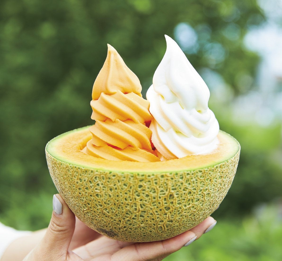 メロンの上にソフトクリーム。目にも美しいおいしさは、SNS映えもばっちりです。