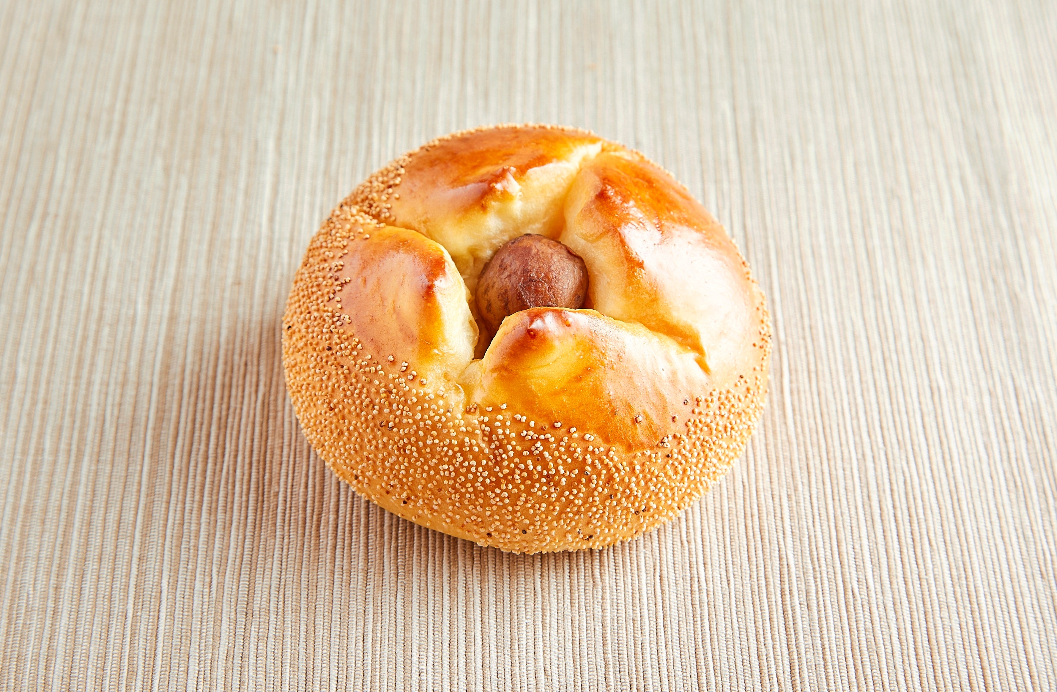 コーヒークリームパンに渋皮栗の甘露煮をトッピングしたまるで栗のようなパン。513BAKERYで栗拾いはいかが?
