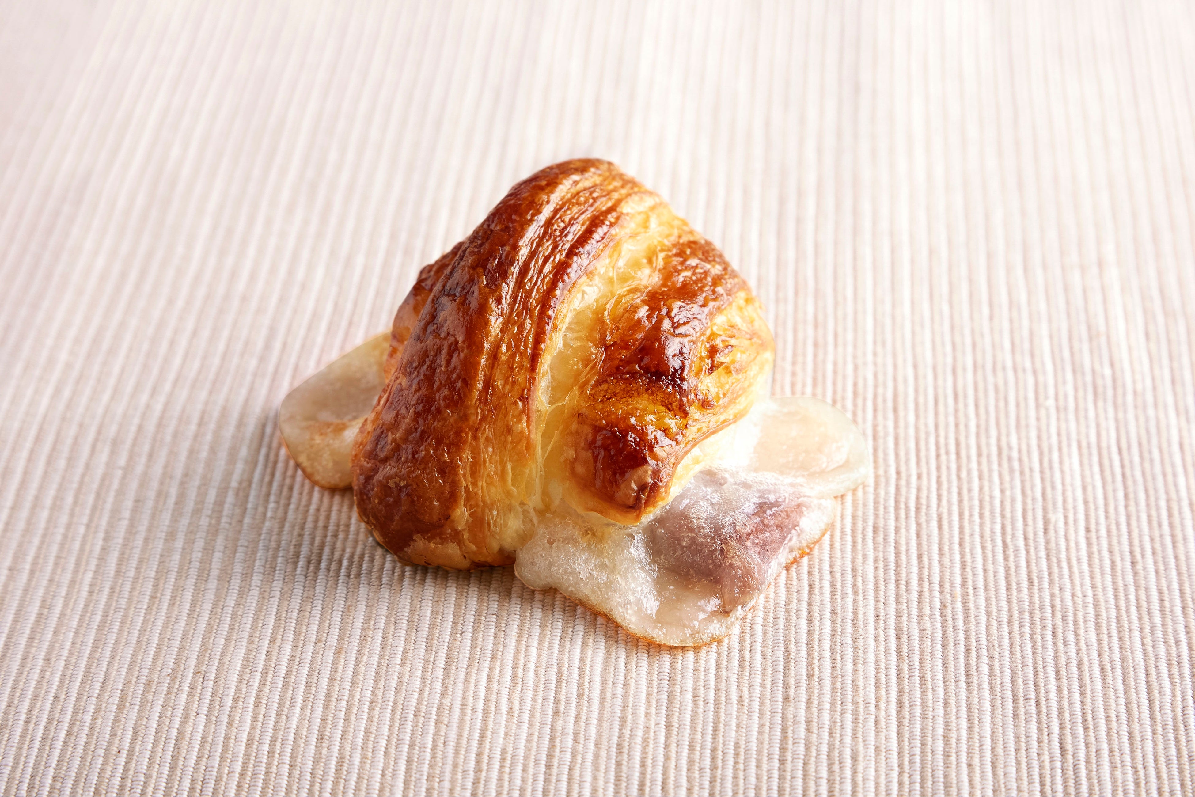 北海道産の小豆あんを包んださわ餅は、ほんのり塩味がきいて風味が良く、コクのある味わいが特徴。クロワッサンの生地と一緒に焼き上げることで、クロワッサンのサクサク食感とこんがり焼けたお餅のカリカリ食感が楽しめます。