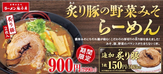 京都北白川ラーメン魁力屋をチェーン展開する株式会社魁力屋(http://www.kairikiya.co.jp本社:京都市中京区、代表取締役社長:藤田 宗、以下魁力屋)は、2022年9月28日(水)より、「炙り豚の野菜みそらーめん」を期間限定で販売開始いたします。