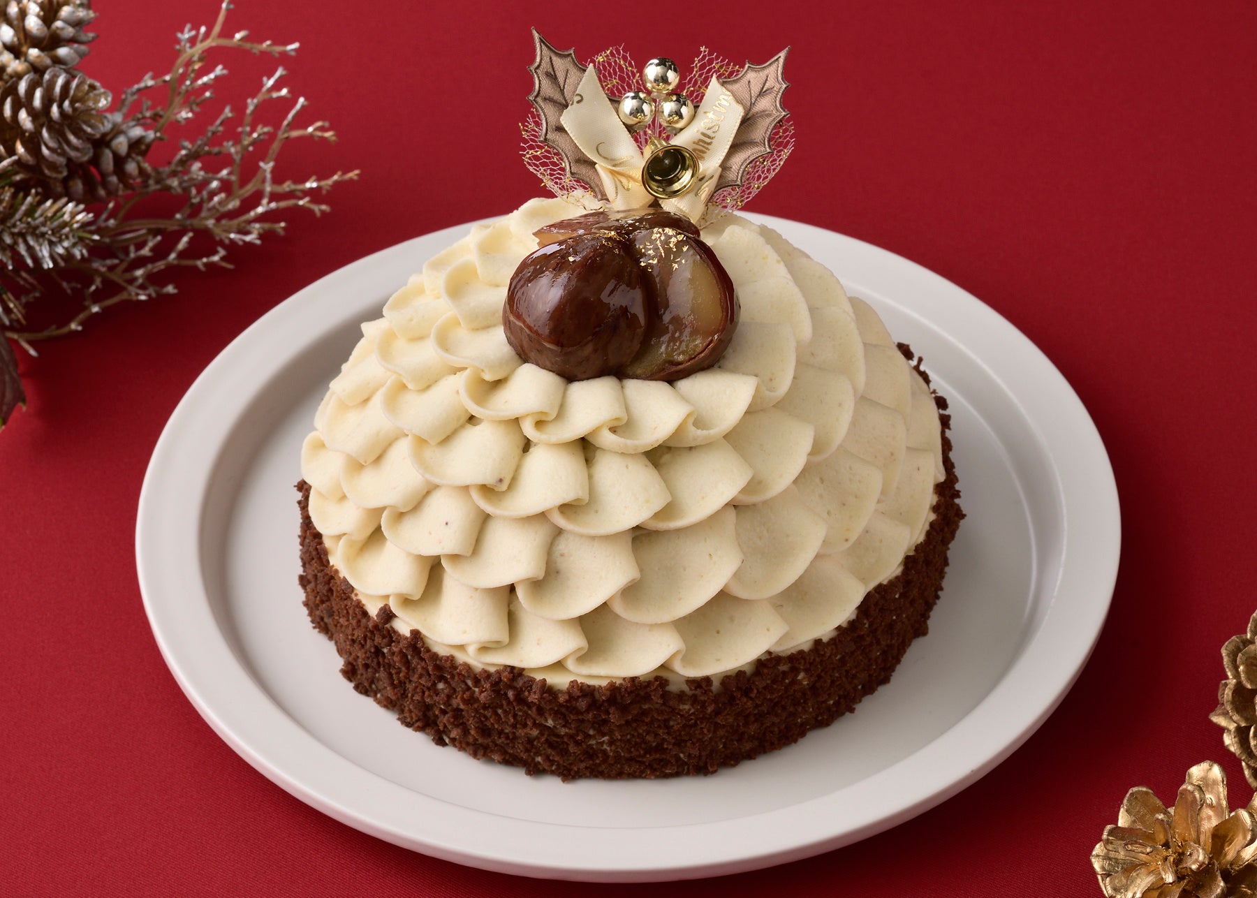 左:たっぷり苺のデラックスクリスマス(4.5号) 上:熊本県産和栗のスペシャルモンブラン(4.5号) 右:ミロワールショコラ(4.5号)