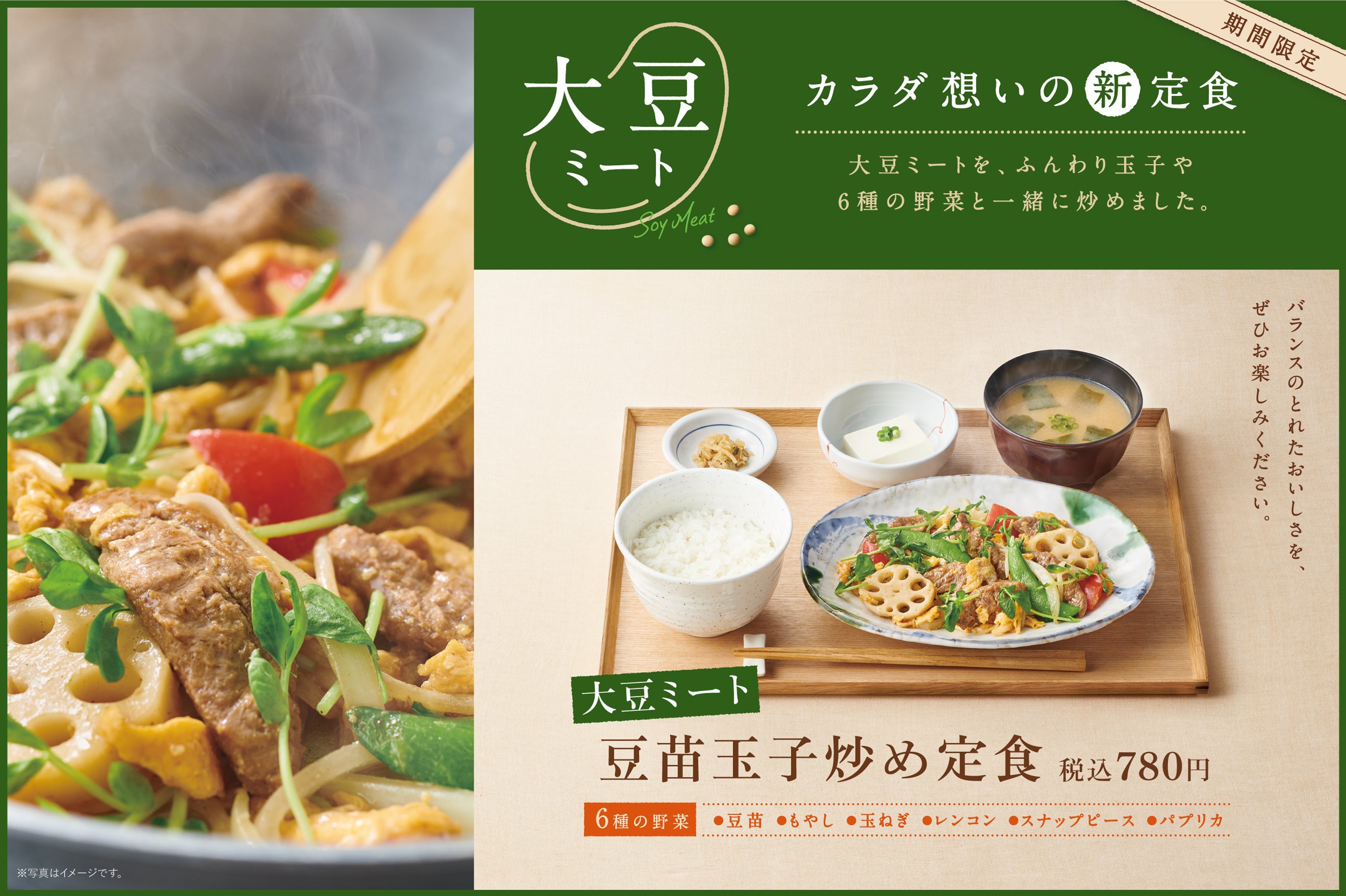 株式会社プレナスは、定⾷レストラン「やよい軒」を、2022年8⽉末現在366店舗展開しております。このたび100%植物性原料で作られた次世代の⾁“⼤⾖ミート”を使⽤した定⾷として『⼤⾖ミートの⾖苗⽟⼦炒め定⾷』780円を、10⽉4⽇(⽕)より新発売いたします。また同⽇より、おうち定⾷の『[テイクアウト]⼤⾖ミートの⾖苗⽟⼦炒め』780円も併せて販売いたします。⼤⾖ミートをおいしく味わえる「やよい軒」の新しい定⾷をぜひお楽しみください。