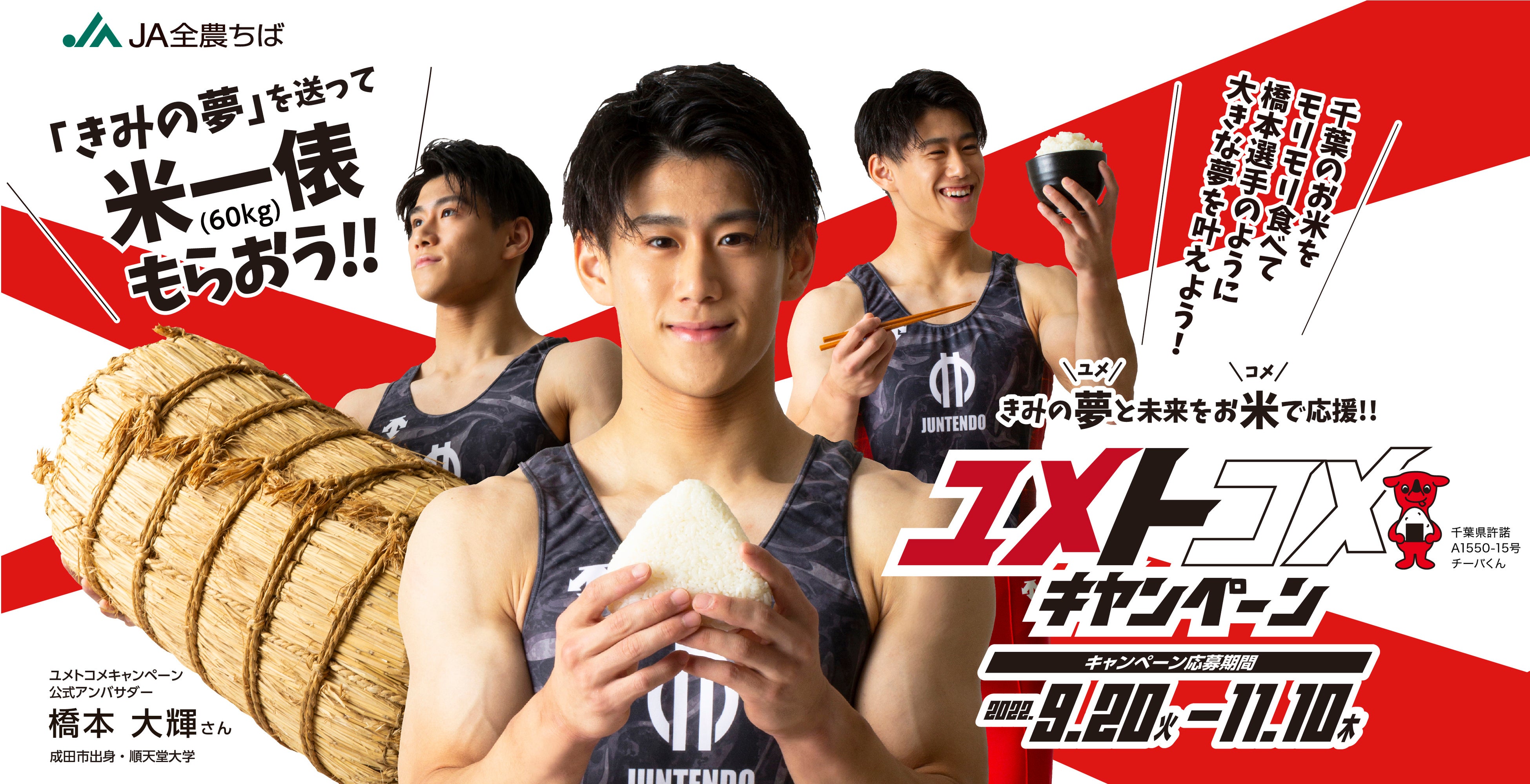 全国農業協同組合連合会千葉県本部(JA全農ちば)は千葉県内に在住・在学の22歳未満の方を対象に「きみの夢と未来をお米で応援!!ユメトコメキャンペーン」を令和4年11月10日(火)まで開催します。