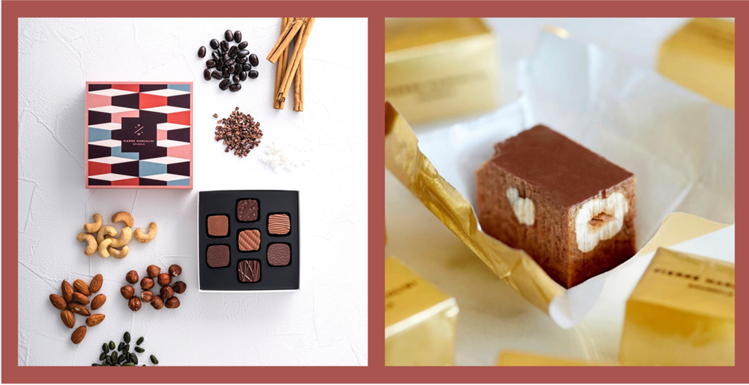 この秋のテーマは『Saison flamboyante 〜 華やぐ季節』。伝統的なプラリネのレシピをピエール マルコリーニが現代的にアレンジして完成させたベルギーで大人気の「プラリネ モデルヌ」、プラリネの中にサクサクのフィアンティーヌとヘーゼルナッツが入った「プティ ボヌール」など、今まで日本未発売だった商品がついに展開となります。自分へのごほうびに、また、大切な方への贈り物にも相応しい上質な味わいをお楽しみください。