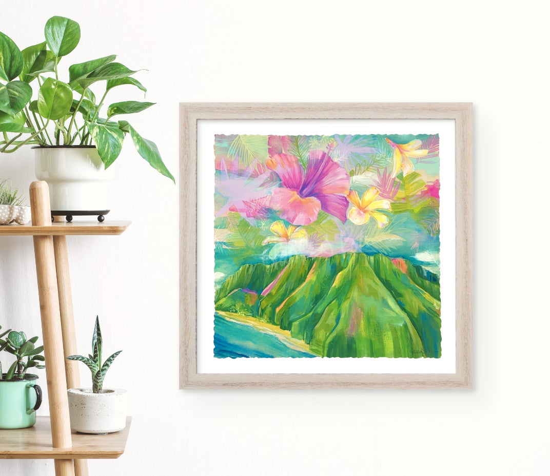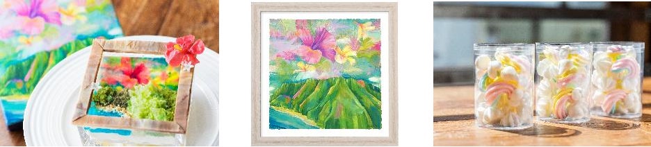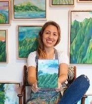「私の描くアートは、ハワイで生活する中で見る大自然からインスピレーションを得ています。アートを通して皆さんにもハワイの美しさを感じてもらい、そして少しでも幸せを感じてもらいたいと思っています。「Jubilant」もそうした想いを込めて描いた作品の1つです。